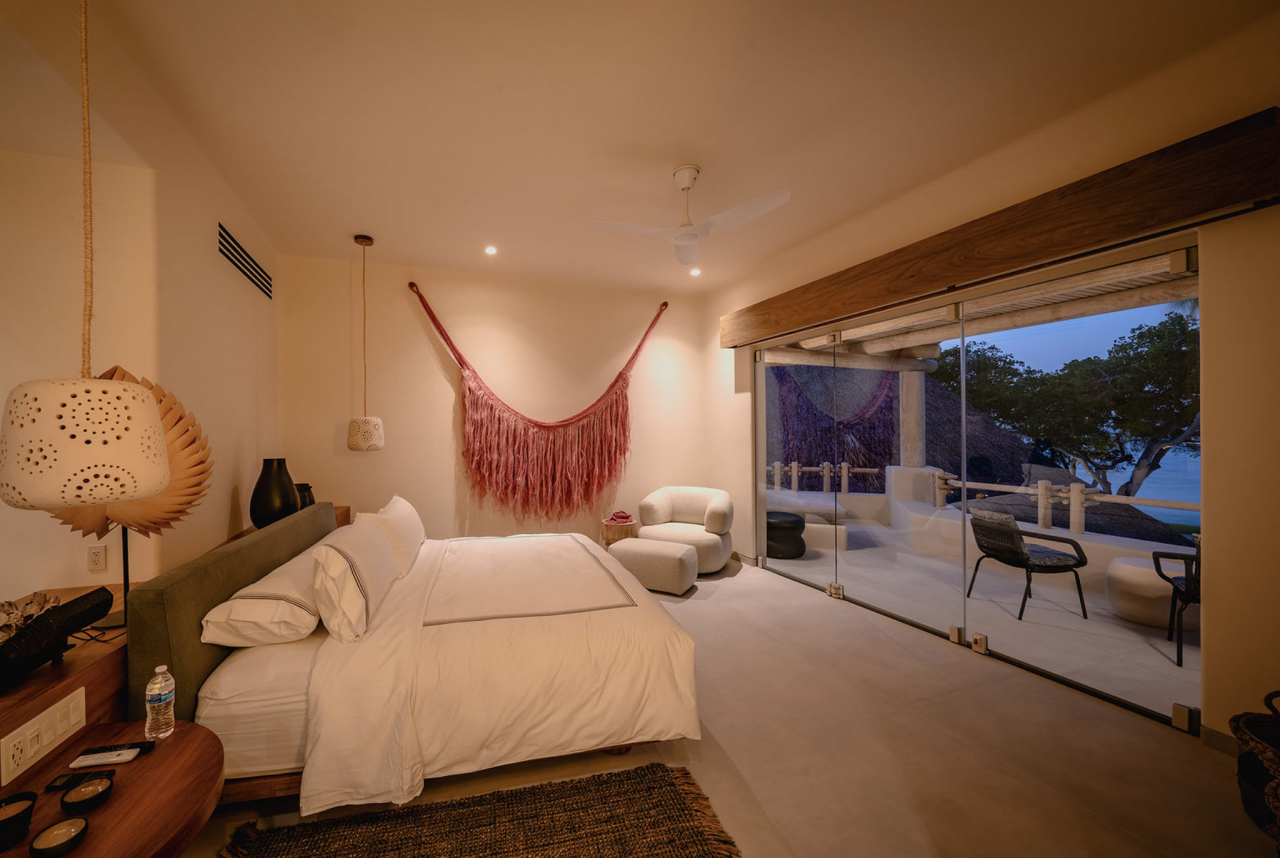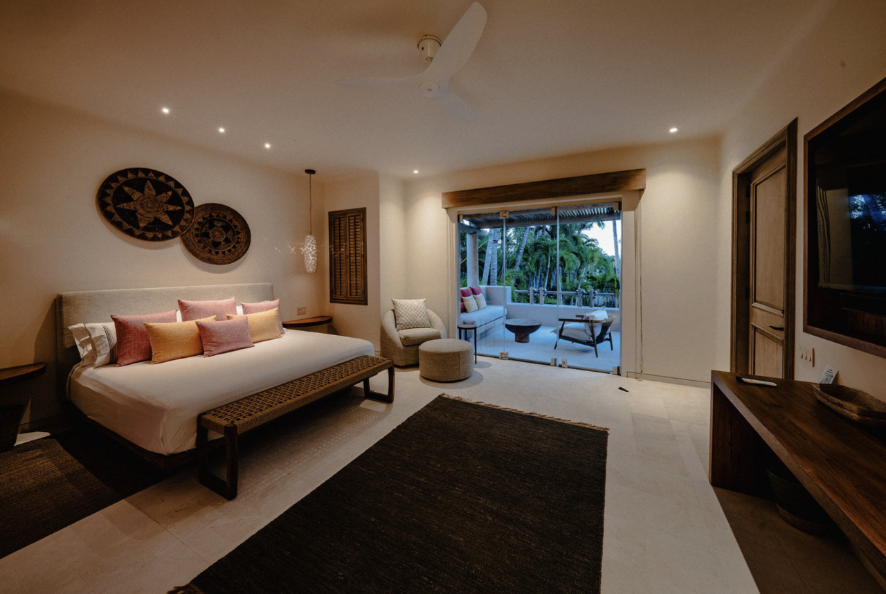 - Bedroom 4: King bed, en suite bathroom with stand along shower & bathtub, walk-in closet, TV, AC, desk, safe, ceiling fan, private terrace, access to pool area, ocean view