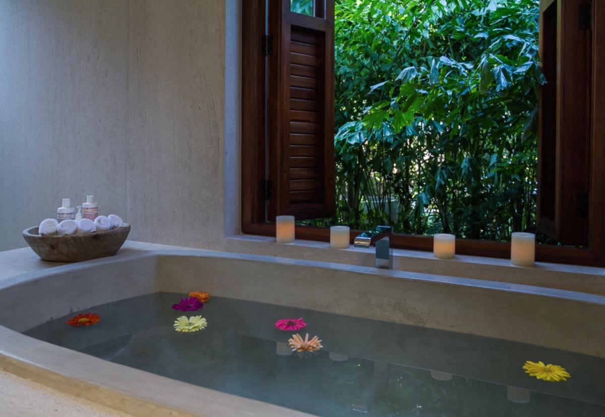 - Bedroom 7: King bed, en suite bathroom with shower and bathtub, TV, outdoor bathtub