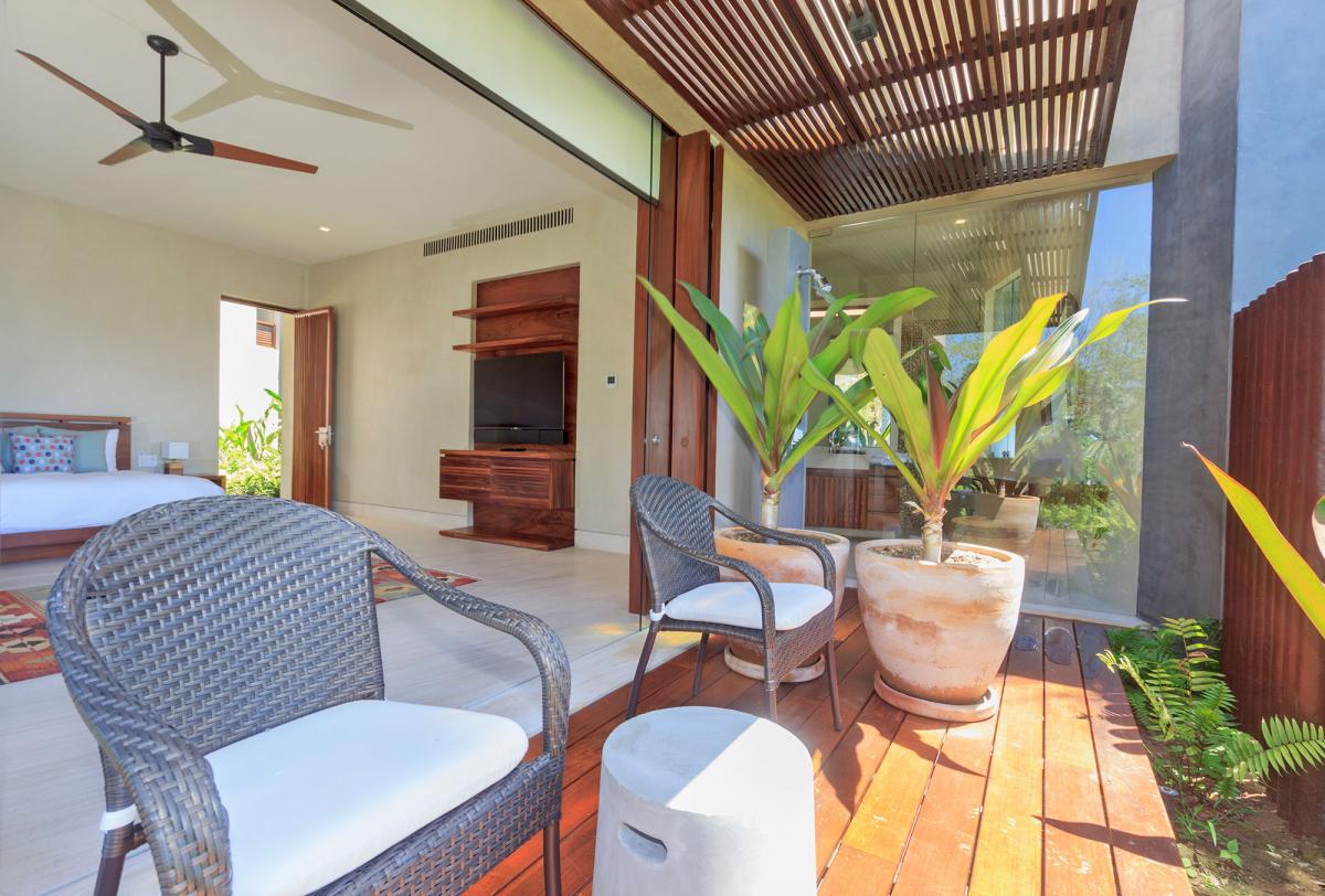 - Bedroom 3: King bed, en suite bathroom with shower, al fresco shower, sound system, TV, AC