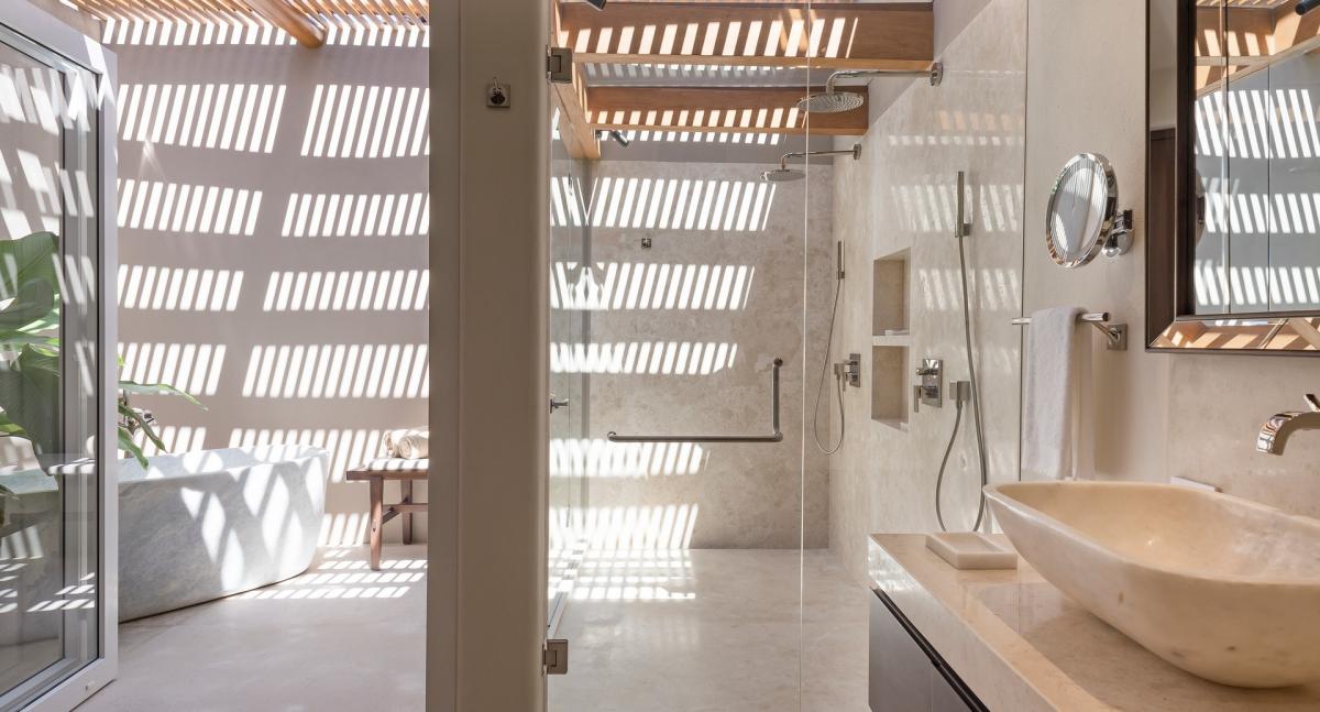 Primary Bedroom 2: King bed, ensuite bathroom with outdoor showers and bath