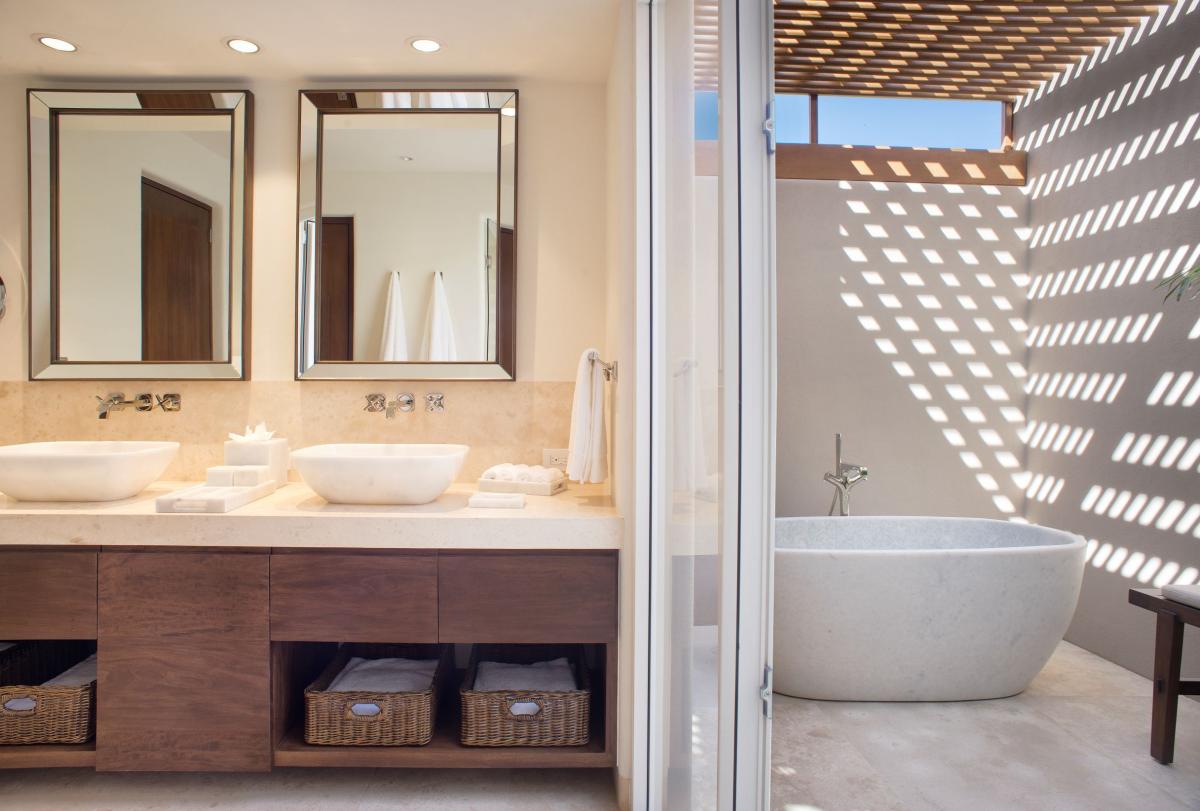 Casa Luna Nueva sleeps 10 guests and comes with two primary bedrooms! That's right two. Both equipped with a king bed ensuite bathroom, outoor shower and bath. The other bedrooms are just as luxurious each with their own ensuite bathrooms. This Punta Mita rental also gives you access to beach clubs, has its own heated pool and spa and Wifi throuhgout the entire house.