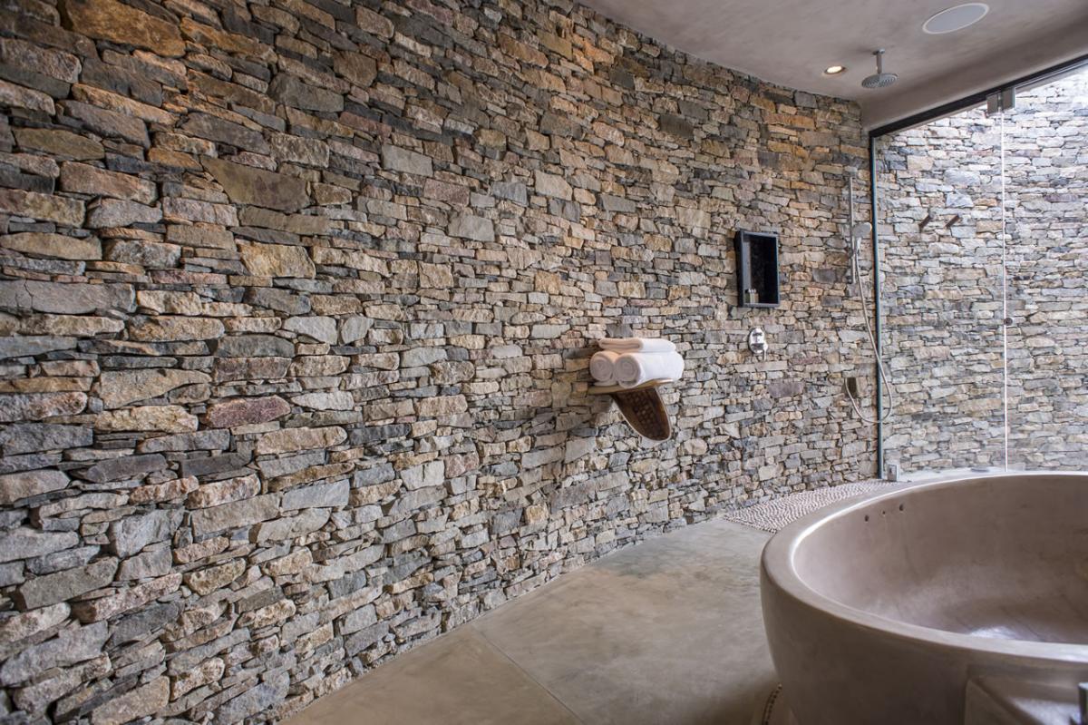 - Bedroom 1: King bed, en suite bathroom with shower and large stone bathtub, alfresco shower, sitting area, terrace