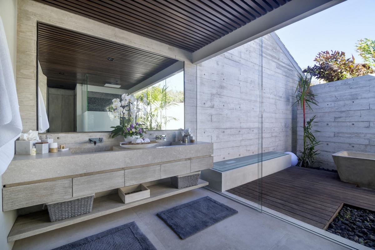 Bedroom 1: king bed with ocean views, ensuite bathroom with private outdoor garden shower/bath