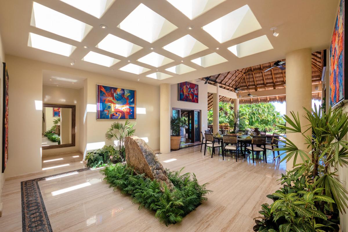 Unplugged and an escape to simplicity wrapped in luxury, is the best way to refer to this truly enchanting villa. Beautifully and securely situated in the Mexican Rivera known as the Punta Mita resort, La Villa Bella is located on the Jack Nicklaus signature golf course of Pacifico, adjacent to the Four Seasons, overlooking the expansive Bahia de Banderas and Pacific Ocean. Tastefully grand, La Villa Bella will indulge you with magnificent views of the ocean and the Marieta Islands, and the perfect fusion of tropical and traditional Mexican architecture, in an exquisite setting of lush natural beauty. All this comes with the convenience of air conditioned suites, wireless internet, and high end stereo compatible with your CDs, iPod, and iPhone. Life is good at La Villa Bella. Relax in the ultra calm and soothing indoor and outdoor oversized living spaces throughout this magnificent villa. Enjoy the 4 exquisitely designed suites, 5 bathrooms, a relaxing indoor/outdoor living room with adjoining wet bar, family room, dining room, breakfast room, separate palapa for dining, gourmet kitchen, and a heated pool overlooking the azul green Pacific and distant Puerto Vallarta skyline and Sierra Madre mountains. The highest level of service and amenities are the final ingredients to this wonderful retreat. The chef will cater to your every culinary desire and the concierge will accommodate your every need to make sure your visit is full of leisure, comfort, and adventure. There are a variety of restaurants, services, and activities such as villa massages, whale watching, surfing, kayaking, sailing, fishing, horseback riding, and jungle adventures that will introduce you to the lifestyle and natural wonders of this tropical paradise. It is easy to do it all and experience the local color and flavor of nearby authentic Mexican villages or simply improve your skills at the art of doing nothing. Whichever you choose, you will undoubtedly create memories for a lifetime at La Villa Bella. This Punta Mita villa is great for families!