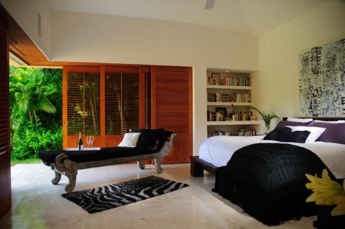 Las Palmas embodies the open-air lifestyle of the Punta Mita resort. The single level Punta Mita rental features a spacious combination living/dining room that opens onto a partially covered expansive terrace, with outdoor dining area, wet bar and Viking grill, and a private pool. Just off the large central patio, which showcases a stunning water feature, volcanic stone backdrop and pebble-carpet detailing, is a gourmet kitchen and full laundry. Las Palmas features upgraded landscaping, with abundant palms providing additional privacy.