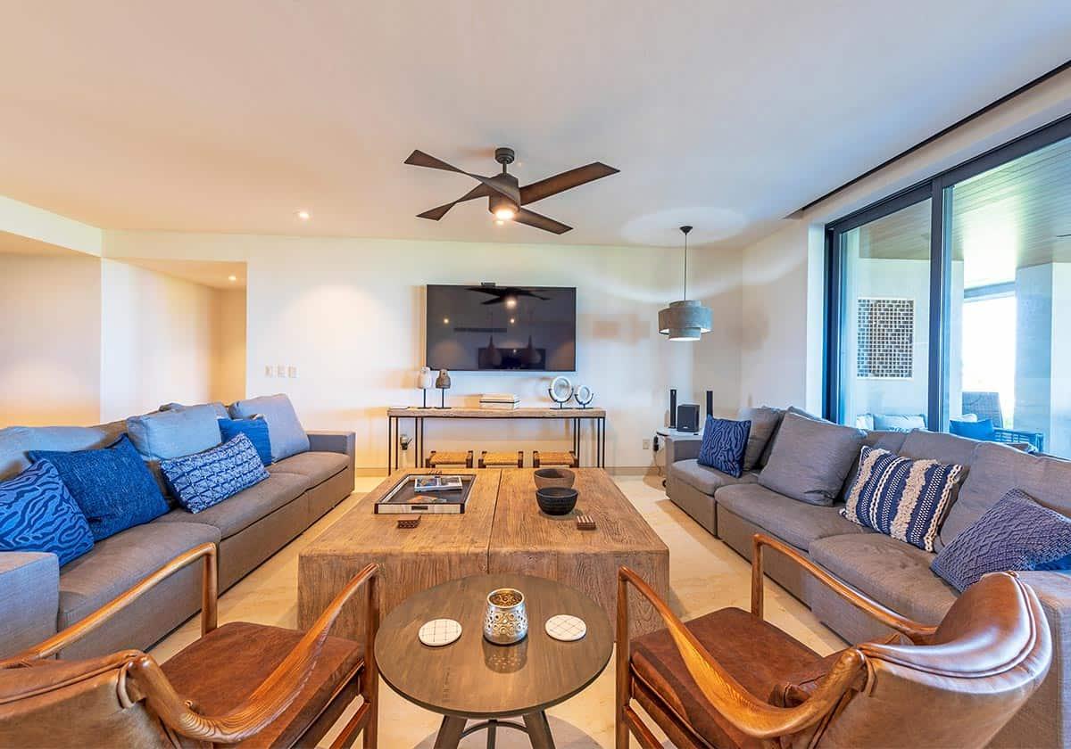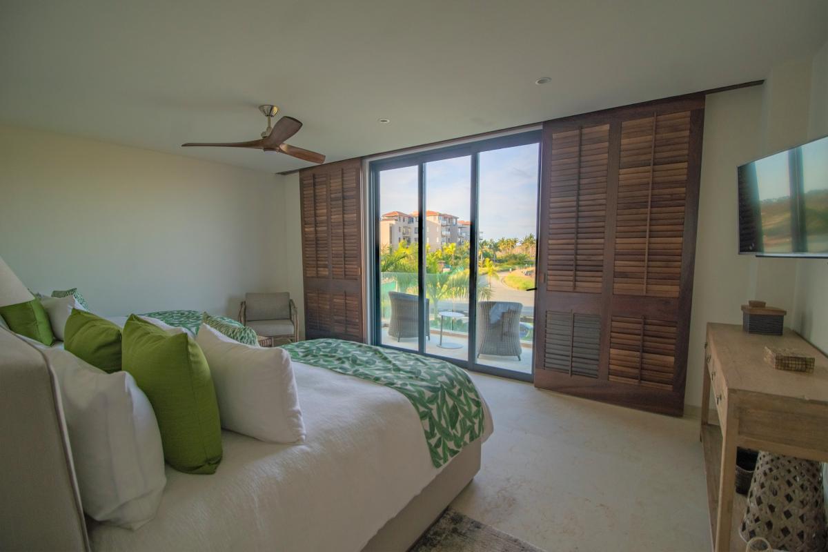 This spacious Punta Mita retreat offers an airy open-plan design, upscale kitchen, and serene, designer-furnished interiors that blend seamlessly with the outdoors. Each bedroom of Tau 211 features calming neutral tones, private terraces with panoramic ocean and golf course views, and hotel-quality amenities including luxury linens, toiletries, and personal safes. Daily housekeeping and optional chef services add a layer of comfort to this effortlessly elegant retreat.