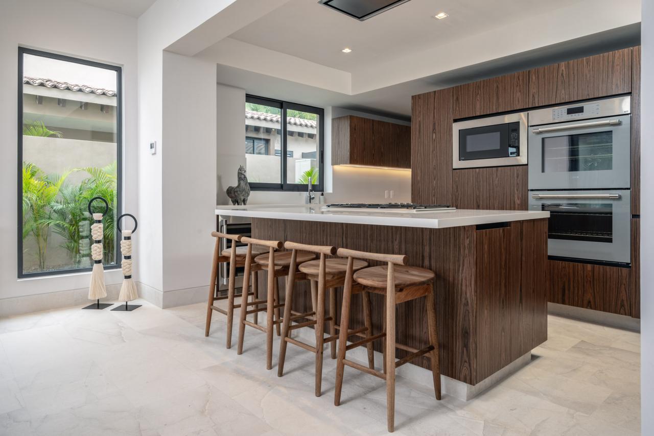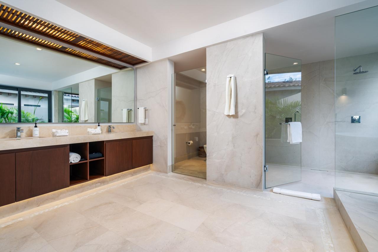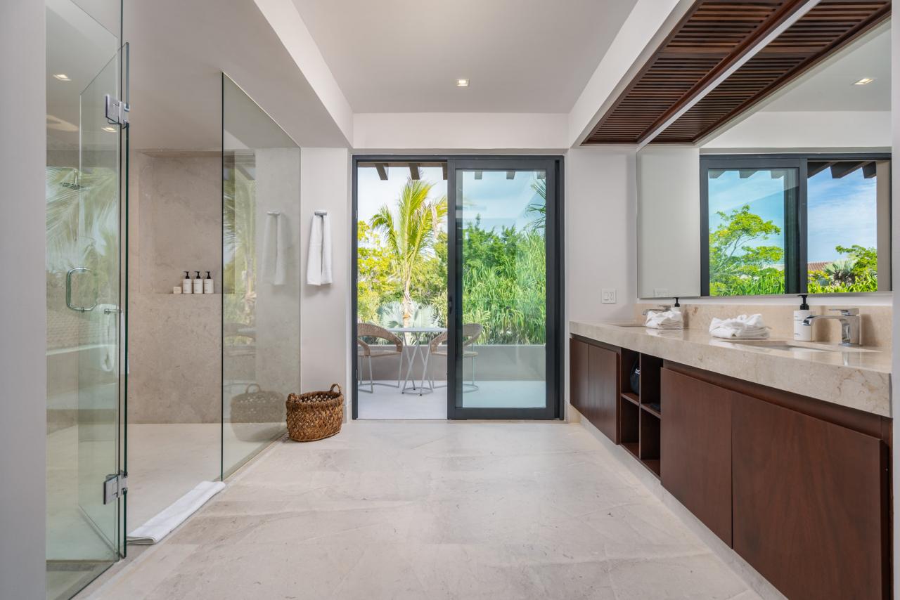 This Punta Mita villa features four well-appointed bedrooms, including two with king-size beds, a room with two queen beds, and a versatile bunk room—each with its own en-suite bathroom and thoughtful touches for comfort. Daily housekeeping and breakfast preparation ensure a seamless, indulgent Punta Mita retreat.