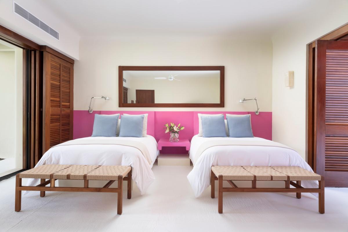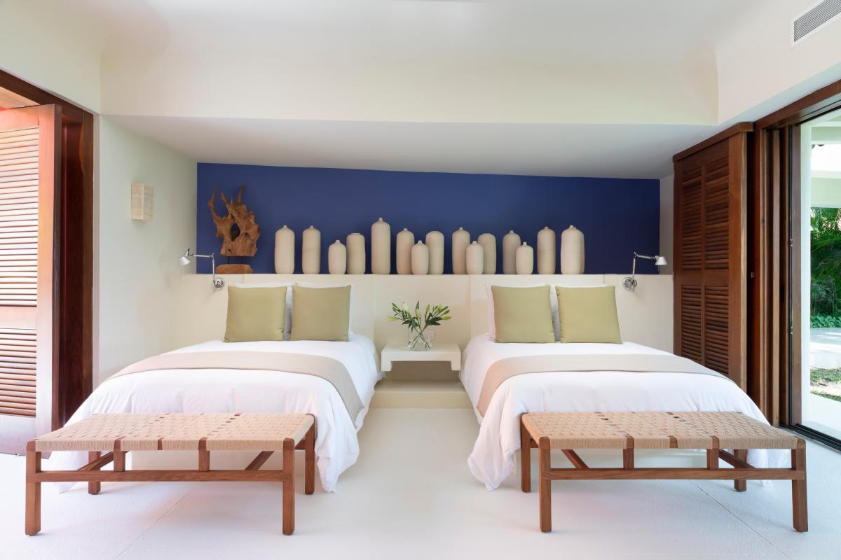 Cabanas Rooms A and B: Located at the villa's main entrance, the charming cabanas offer the option to increase your occupancy to 7 bedrooms. Two rooms with two twin-size beds or optional set up to One King Size Bed. The suite features an in-room minibar, Nespresso® Coffee maker, television and Apple TV, and private baths with shower, vanity makeup/shaving mirror, Hairdryer, Soft terry cloth bathrobes, L’Occitane signature toiletries, and more.