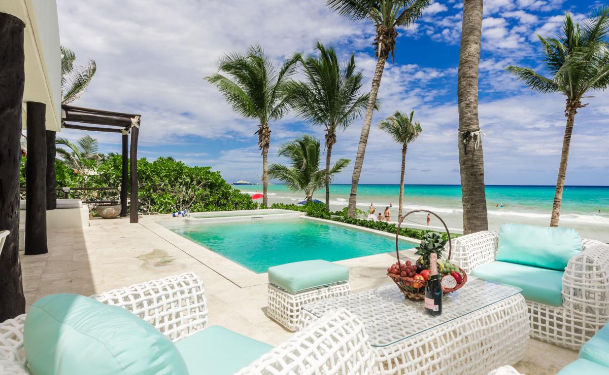 Discover a slice of paradise at Casa Caramelo. This french style three-bedroom property sits right at the golden sand shoreline, a rarity in Playcar Phase I, one of the best beaches at Riviera Maya. Spectacular views of the rolling Caribbean Sea. Feel the luxury in each corner of the villa and get ready to have the most relaxing and wonderful holidays! The pool located just right on the beach and private terrace make you feel to come back here many times!