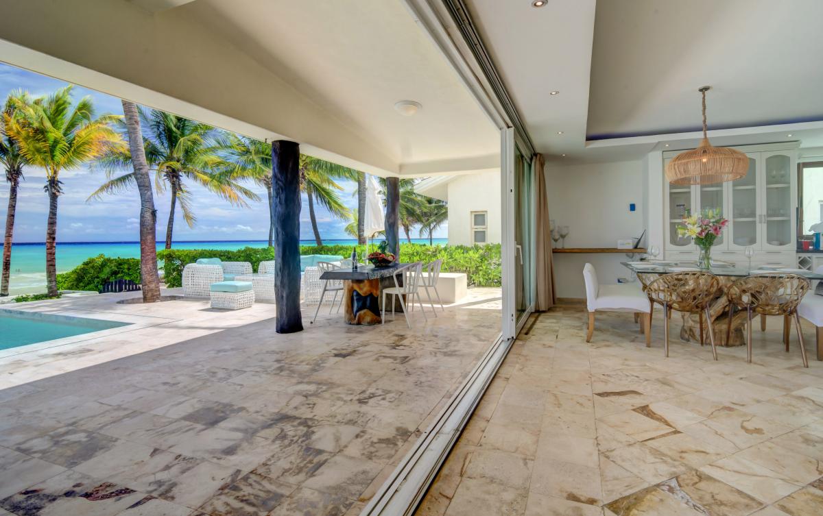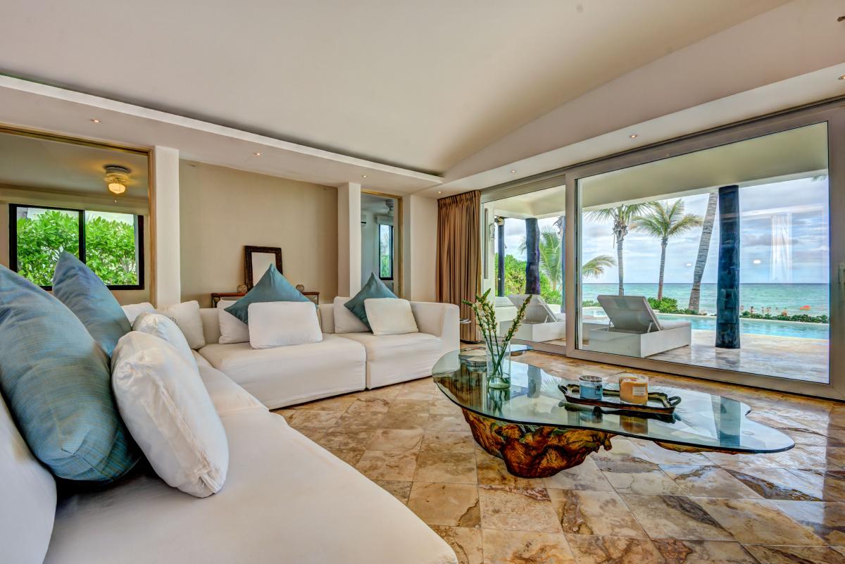 Casa Caramelo is an exceptionally bright, spacious, and elegant beachfront house with an entire wall of windows to enjoy unbeatable Caribbean Sea views from the living room, dining room, kitchen, master bedroom, TV room, and oversized terrace.This gorgeous home features a brand-new swimming pool and quality wooden lounge chairs and patio furniture perfect for a group to enjoy a Mexican vacation in a beachfront dream house.