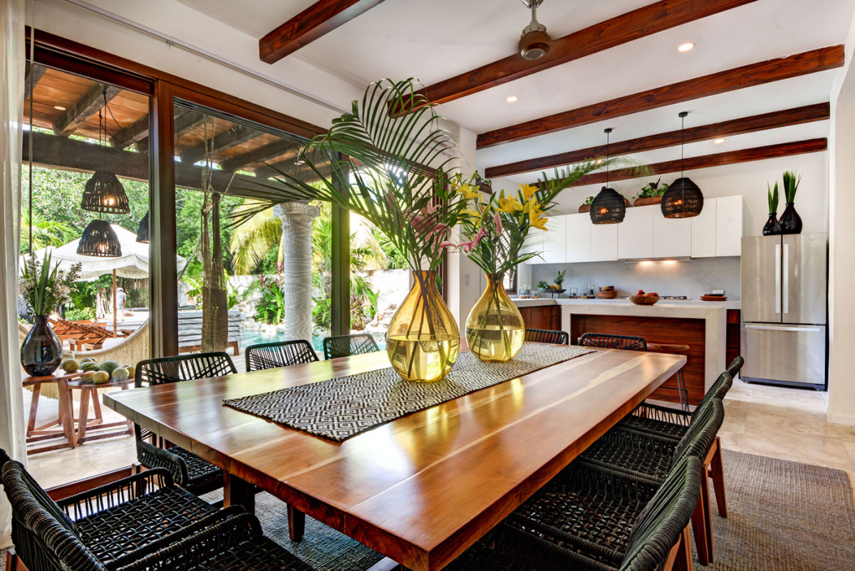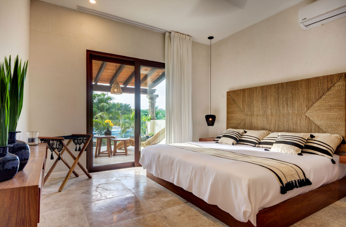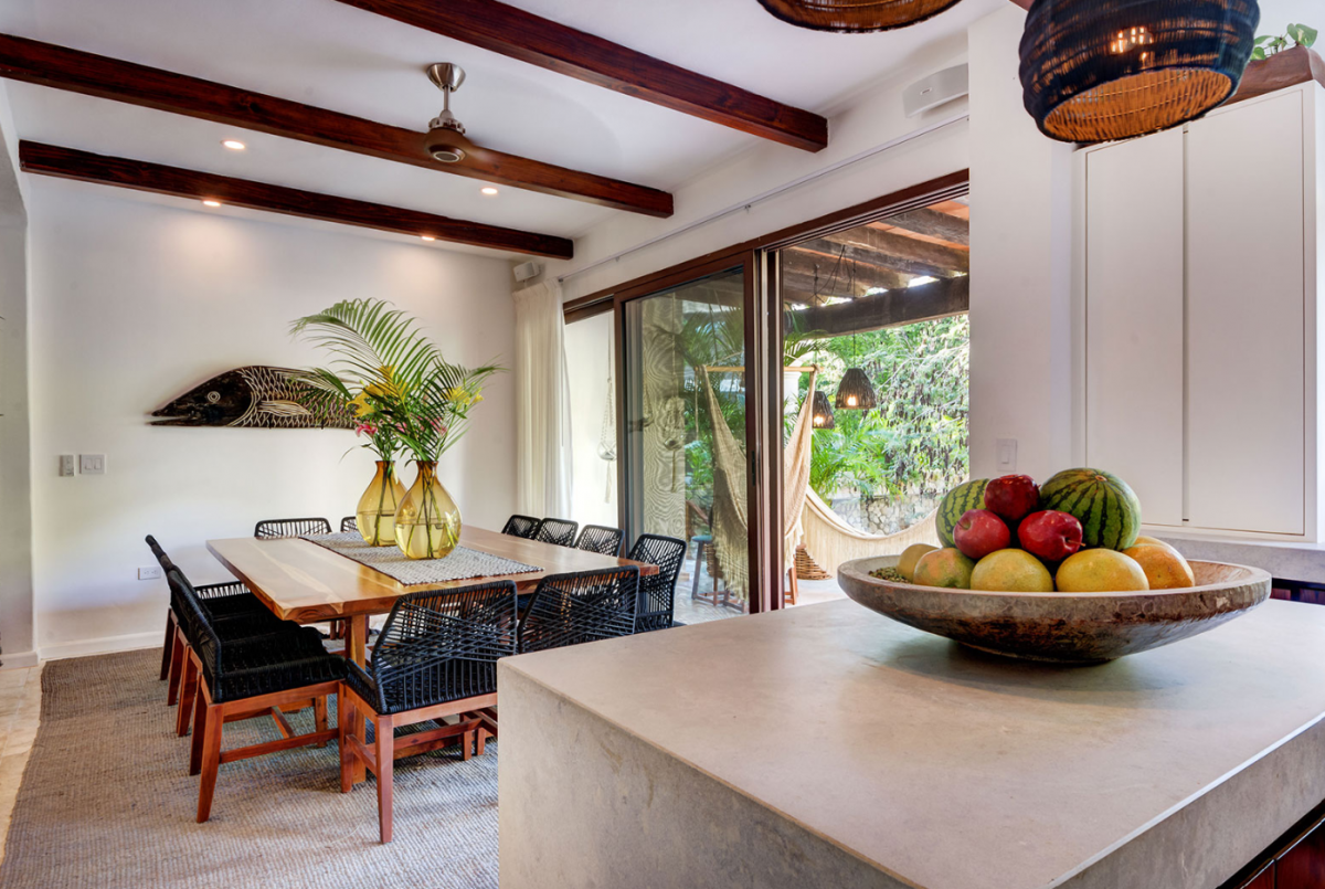 This villa comfortably accommodates up to 12 guests, featuring two ground-floor bedrooms with private bathrooms and three additional upstairs bedrooms, including a sumptuous primary suite. Casa Cenote is designed for outdoor living, offering amenities like a rooftop terrace bar with views of the marina and jungle, a palapa lounge for group activities such as yoga or spa treatments, and a pool area perfect for sunbathing or hosting evening BBQs by a cozy firepit. This elegant home provides a tranquil retreat, ideal for families, couples, or groups seeking a relaxing getaway in a breathtaking setting.
