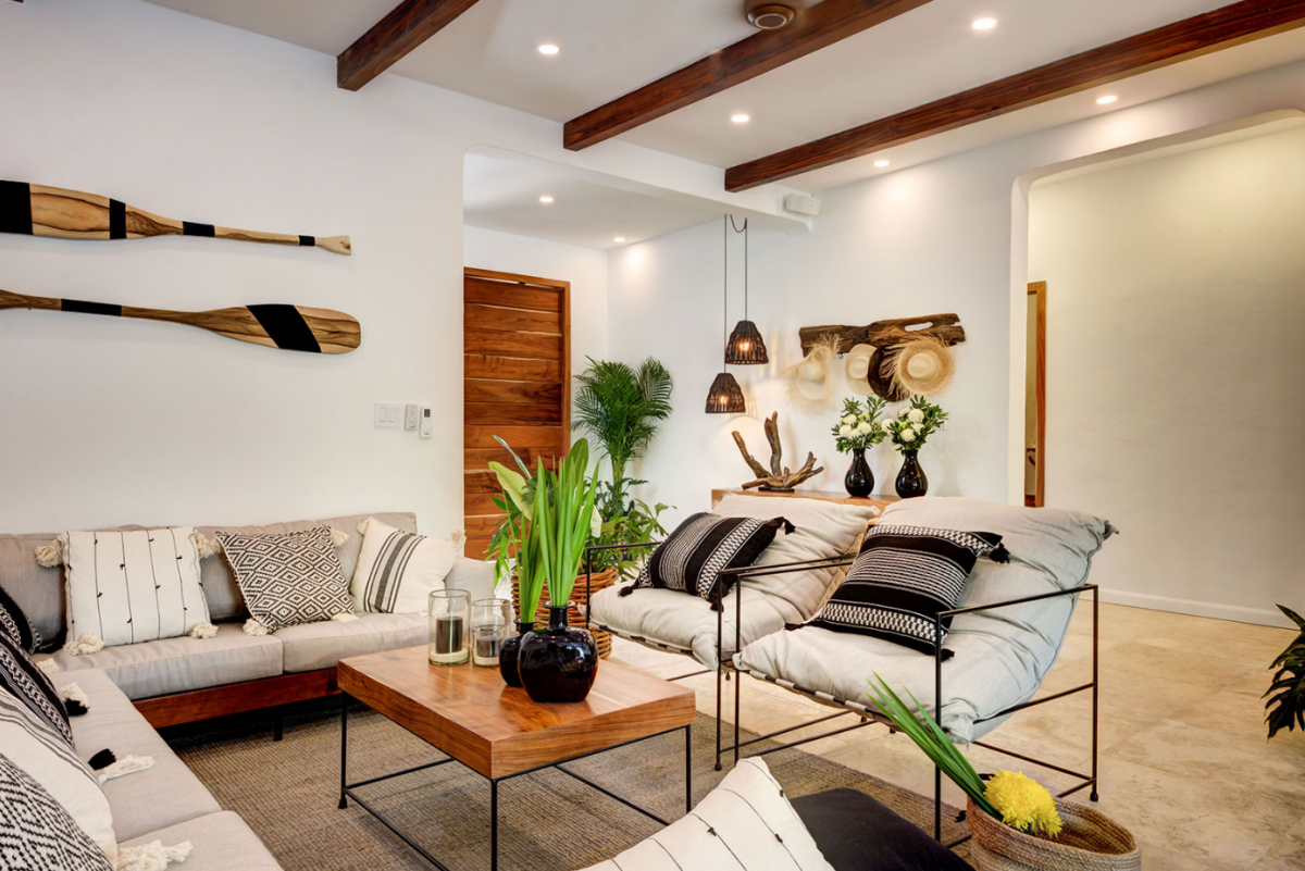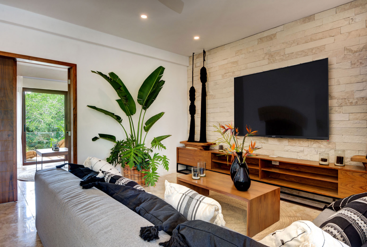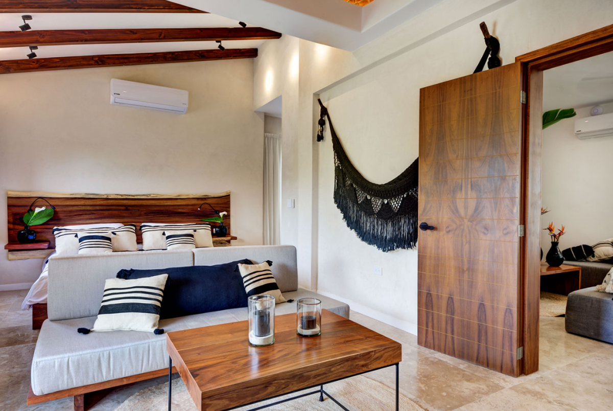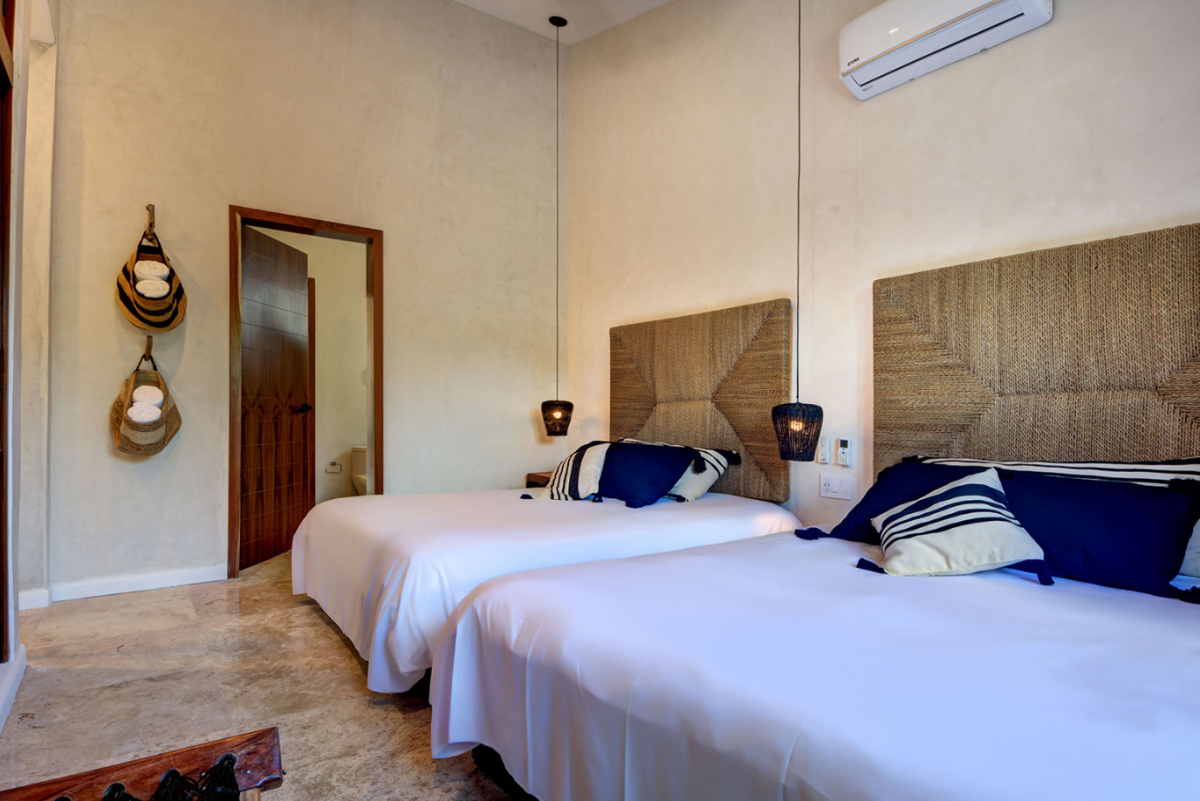 This villa comfortably accommodates up to 12 guests, featuring two ground-floor bedrooms with private bathrooms and three additional upstairs bedrooms, including a sumptuous primary suite. Casa Cenote is designed for outdoor living, offering amenities like a rooftop terrace bar with views of the marina and jungle, a palapa lounge for group activities such as yoga or spa treatments, and a pool area perfect for sunbathing or hosting evening BBQs by a cozy firepit. This elegant home provides a tranquil retreat, ideal for families, couples, or groups seeking a relaxing getaway in a breathtaking setting.