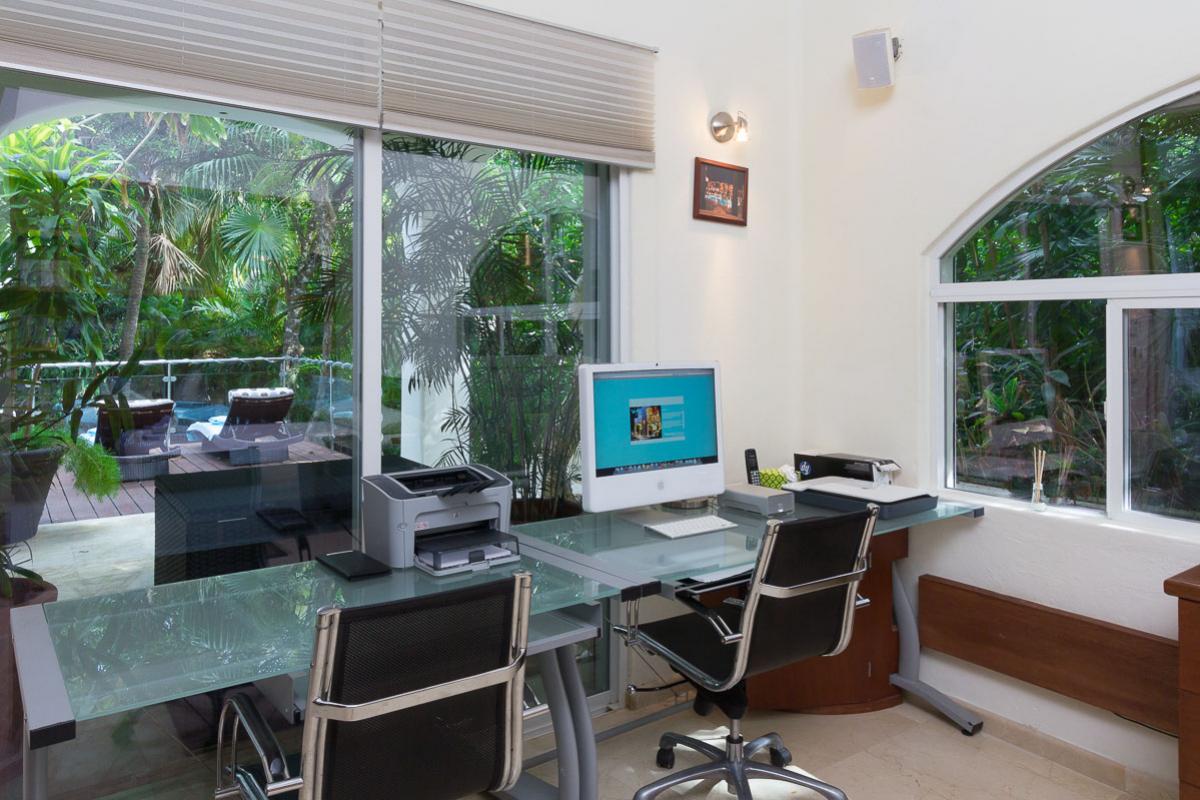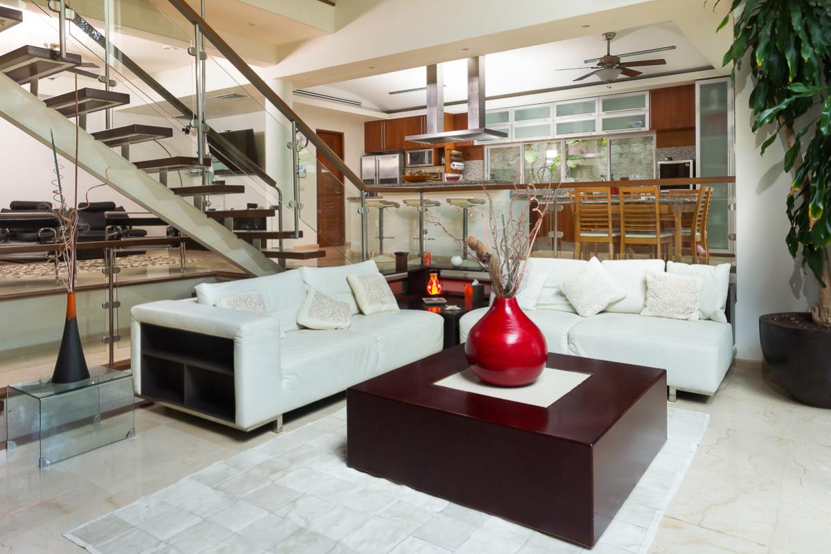 The house itself is a modern, magical marvel; the perfect tropical retreat, it offers a stunning location for guests to relax and experience the peace and tranquility of the Mexican Riviera. This architectural masterpiece offers room and comfort by way of 5,000 square feet of fully air-conditioned living space and a total of 5 spacious bedrooms, including one office/bedroom; each bedroom has its own spacious bathroom. There is a laundry room which doubles as maid's quarters, with a full bathroom and its own entrance.