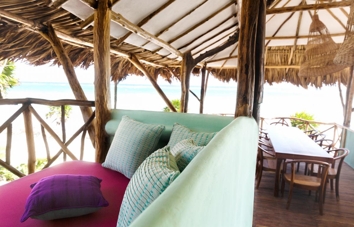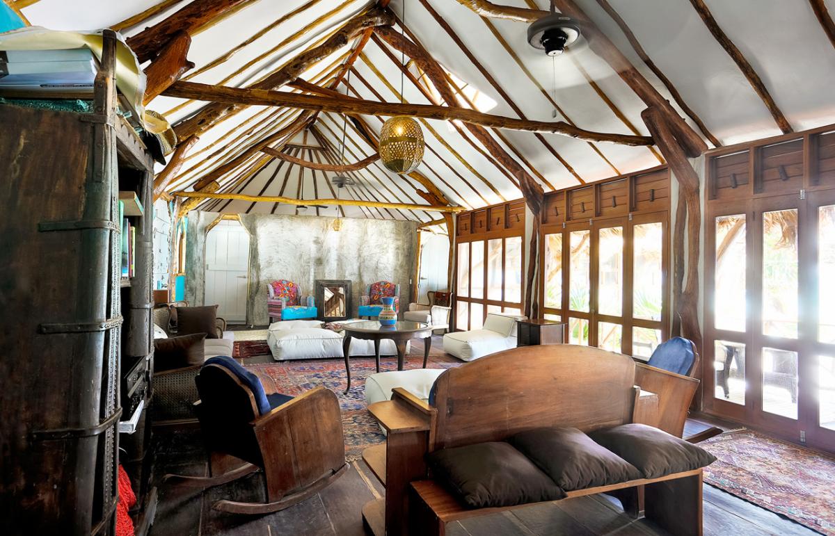 This large private oceanfront house claims some pristine jungle. The casa emerges from the dense natural greenery to stand free on high rocks deep breathing fresh winds of the Caribbean. An intricate piece of beach architecture constructed primarily of wood, the building is irrefutably one of the most unique, meaningful, and comfortable accommodations in Riviera Maya.