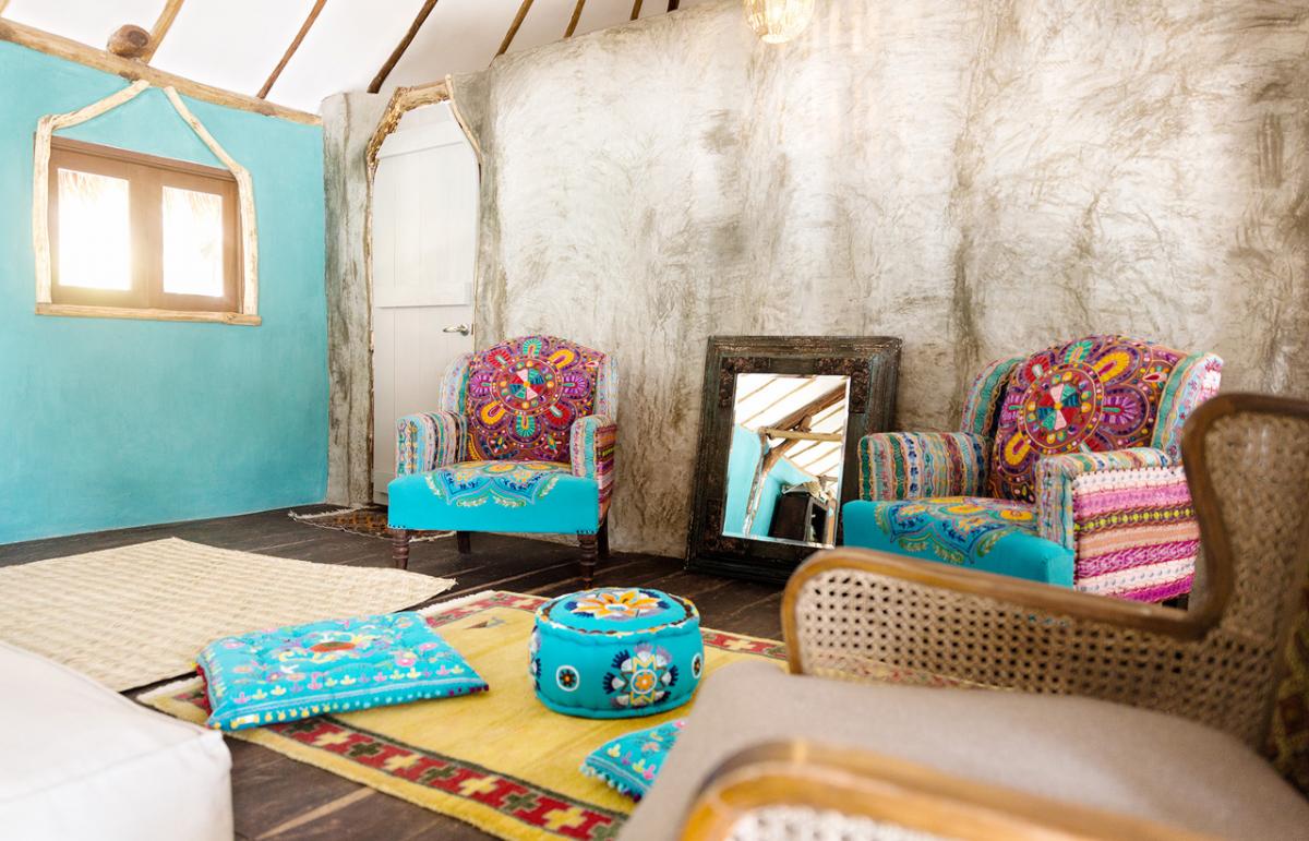 The beach house has this axiological dimension – in line with the overarching cultural mission of the Papaya Playa Project: While serving its most immediate purpose – making guests' experience of the rooms intensely enjoyable, – the interior of Casa Madera is an ample showcase of traditional arts and crafts collected around Mexico, coming primarily from the artisans' villages of Quintana Roo. In view of high hospitality with its conceptual emphasis on meaningful experience as much as on exceptional comfort, the goal is to preserve and promote the indigenous culture(s), knowledge and skills passed down through generations. Some objects in the interior are listed in a special catalogue and can be purchased by guests.