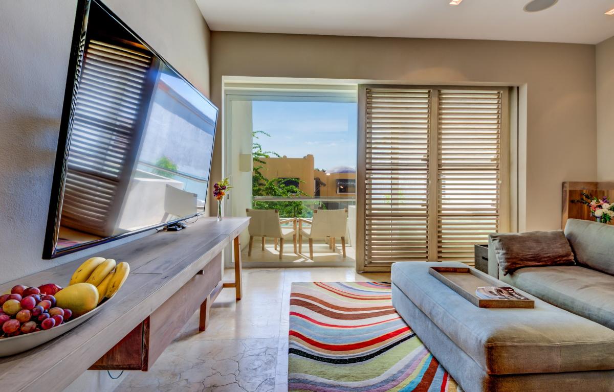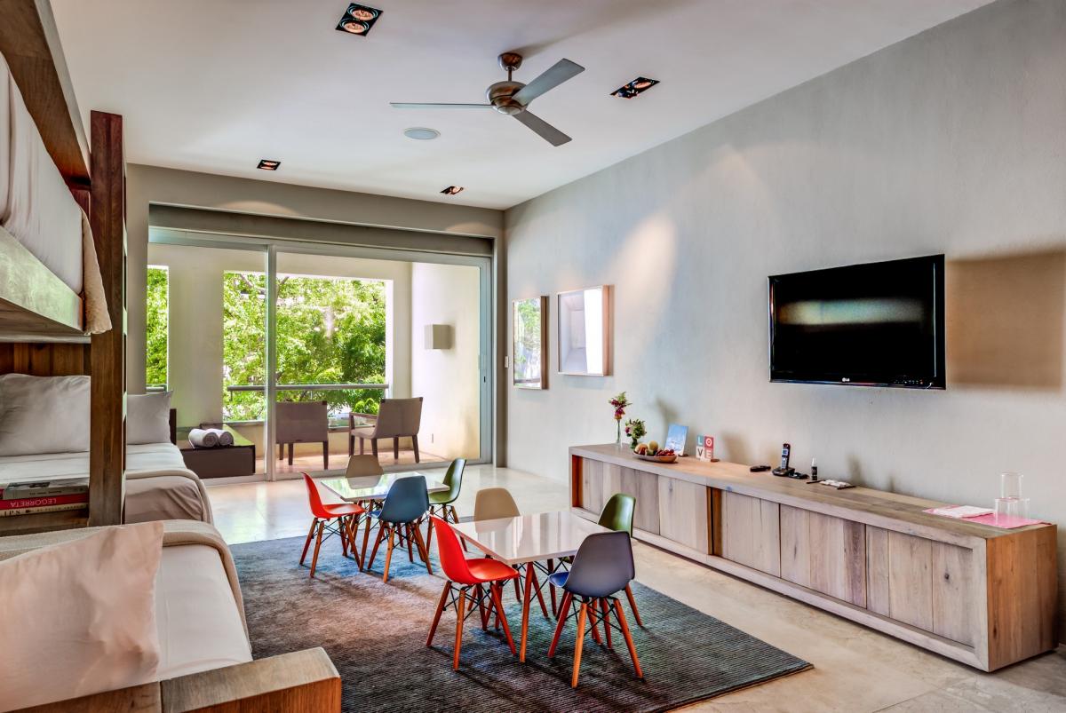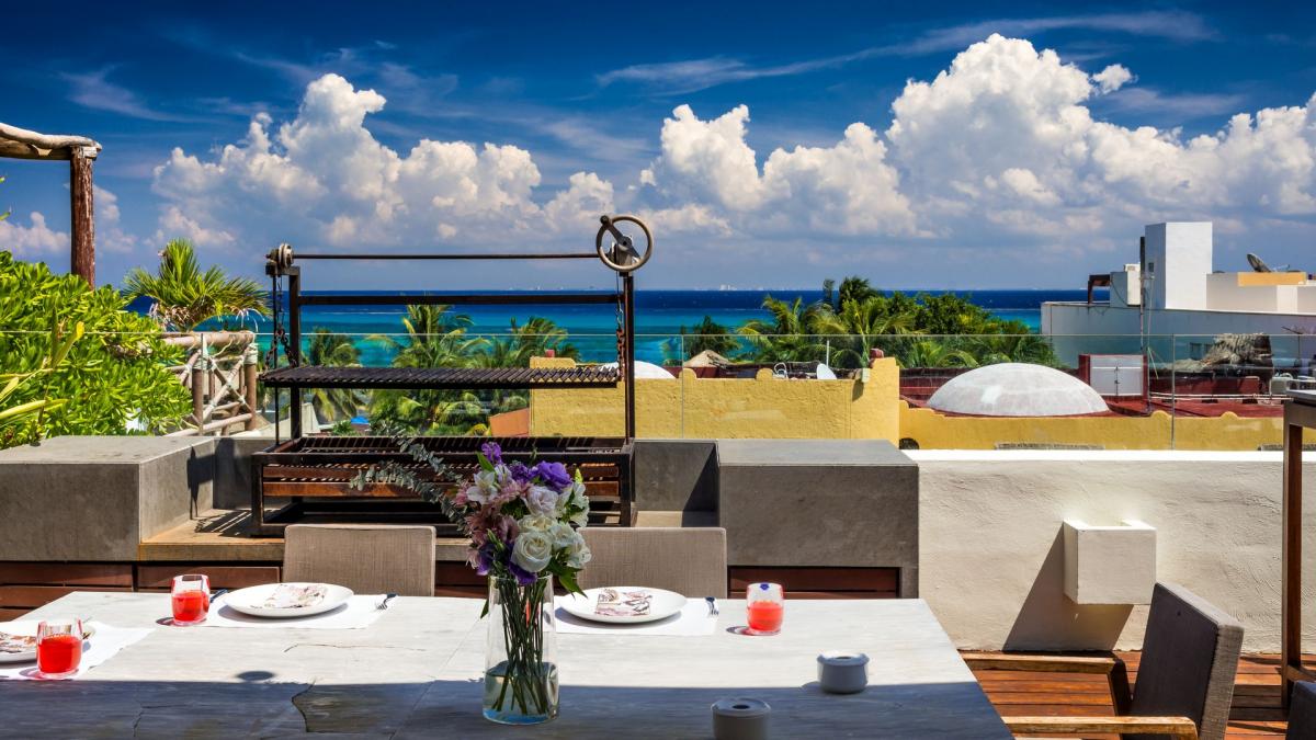 Throw a rooftop party on your outdoor terrace with panoramic ocean views, daybeds and a barbecue dining area. Your private party will enjoy music from high tech playback systems including iPod docking stations and surround sound. Take advantage of the satellite TV, wine fridge, art gallery and vast movie library. When it is time to take the party to the town enjoy the effortless stroll 1/2 a block to 12th street where you will find all the major clubs in Playa del Carmen. ** Please be aware this can mean noise levels are high during peak seasons.