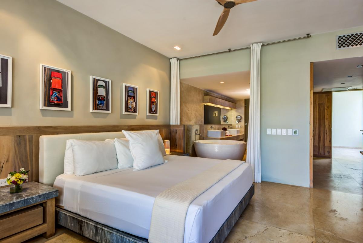 - Bedroom 2: King bed, en suite bathroom with shower and bathtub, private terrace, AC, ocean view