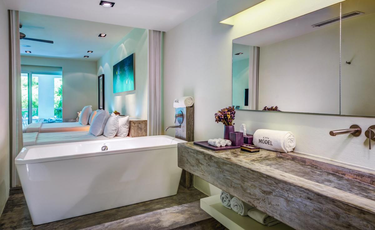 In the mood for an exclusive luxury vacation? Casa Model provides you with everything you need to create an unforgettable experience. Just steps away from Quinta Avenida, Playa’s hub for trendy restaurants and bars, you can readily immerse yourself in Mexican culture. White sand beaches and turquoise water wait for you in the other direction, just one block from the villa. The rest of the region offers stretches of rocky coast covered with corral reefs that are ideal for diving or snorkeling, extensive mangrove swamps, dense jungles and many traces of the ancient Mayan civilization.