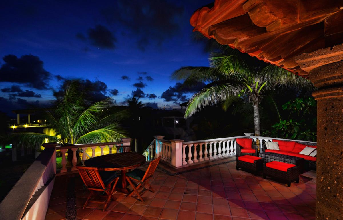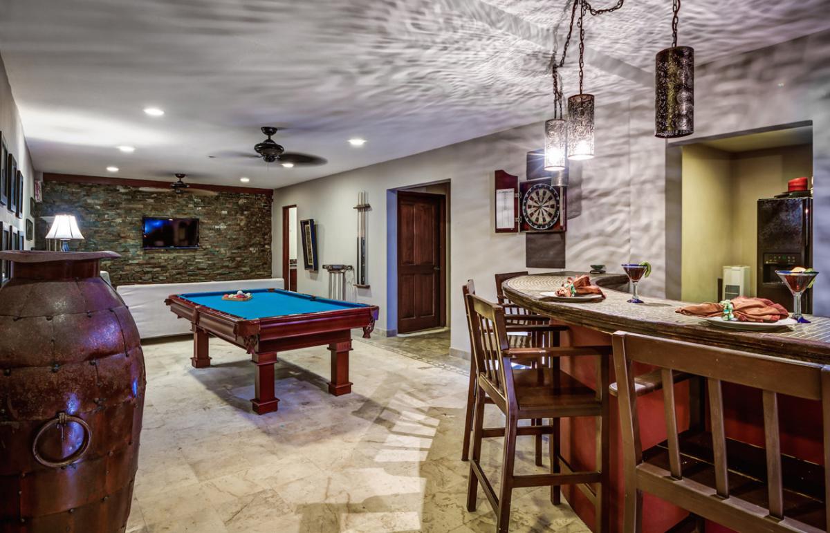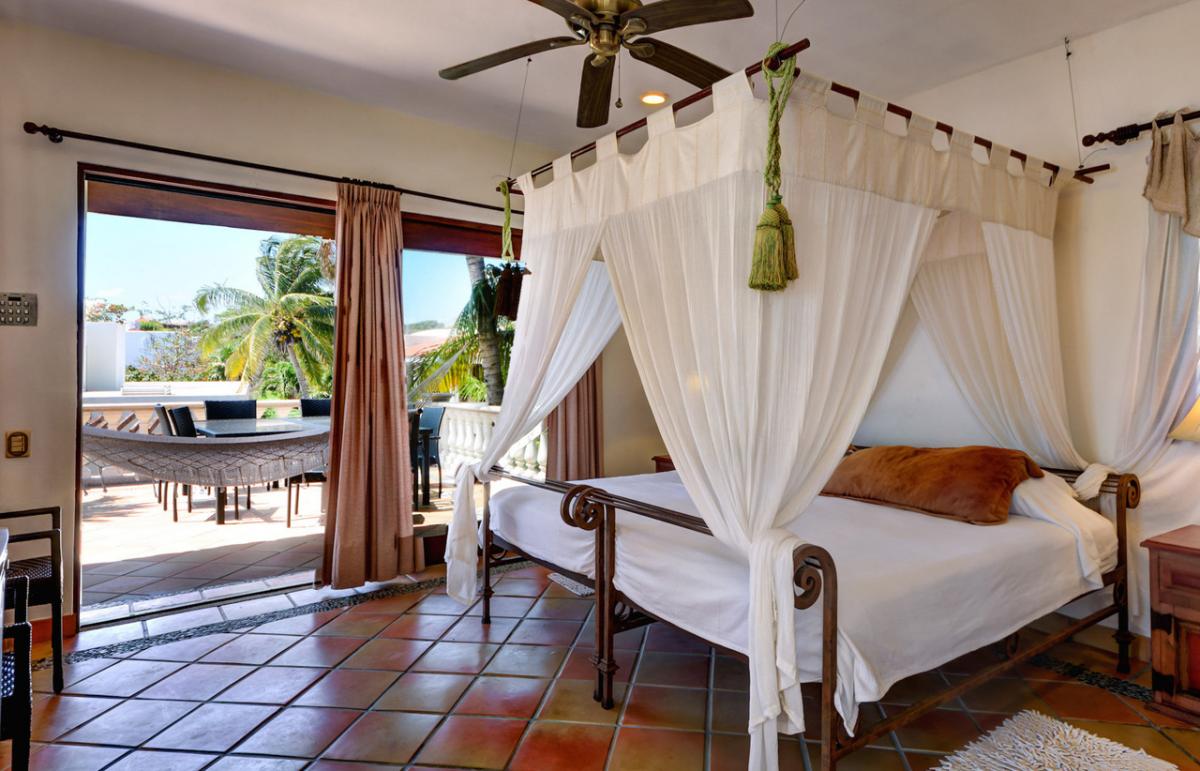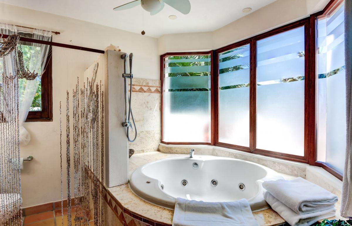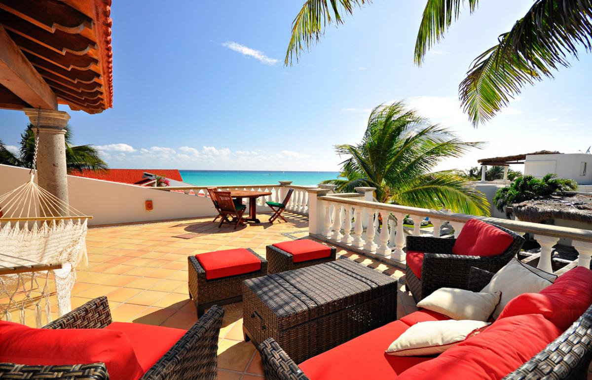 Estrella del Mar is a lovely Mediterranean, 5,000 square foot home, that sits across the street from one of the most beautiful beaches in the private resort community of Playacar Phase I. Three bedrooms are on the first floor, the fourth bedroom is upstairs and has a fantastic terrace with hammock and captivating views of the sea. The fifth bedroom is a media room with 2 sofa couches. The media room is located in the villa's bottom level, and although no ocean views, the media room is ideal for younger kids or family nannies.
