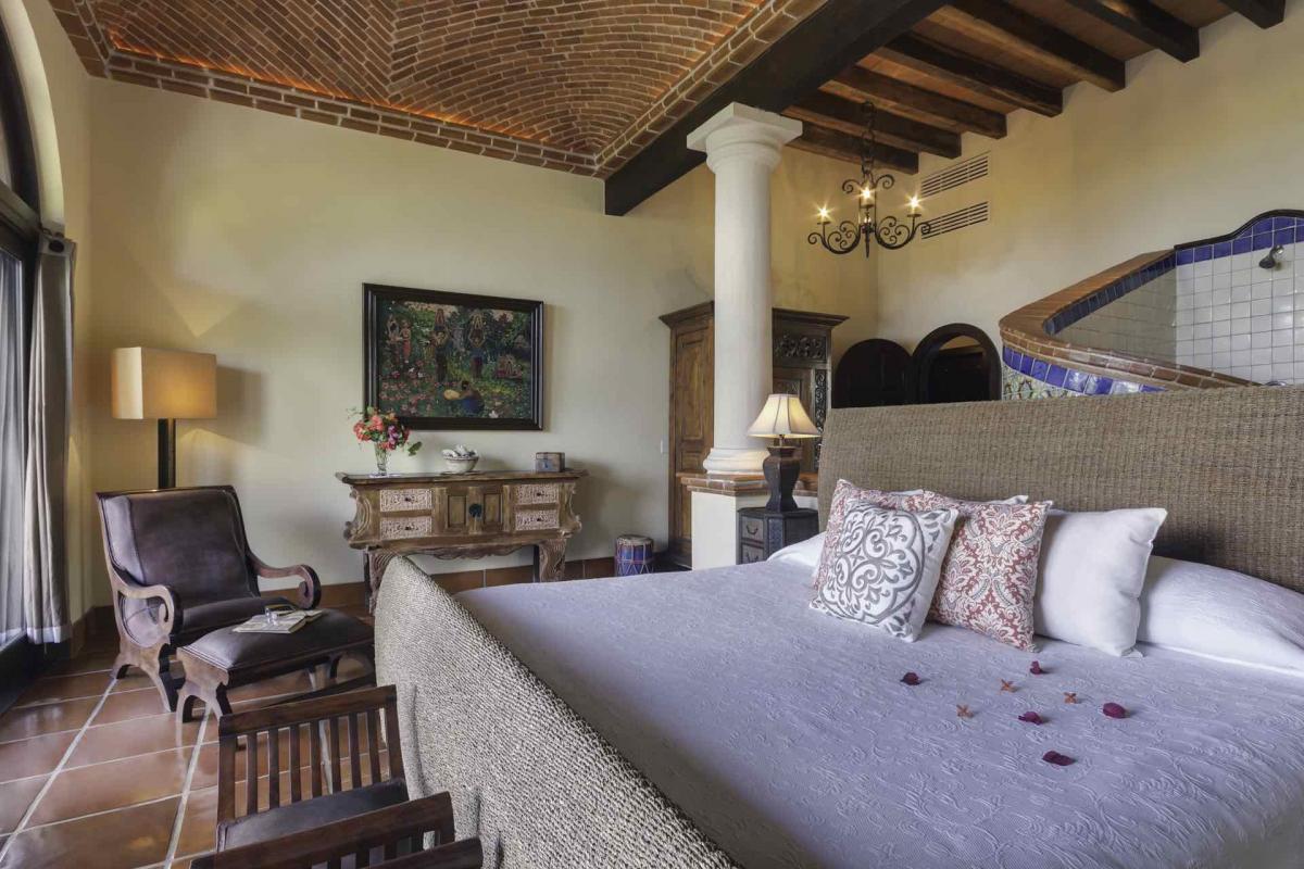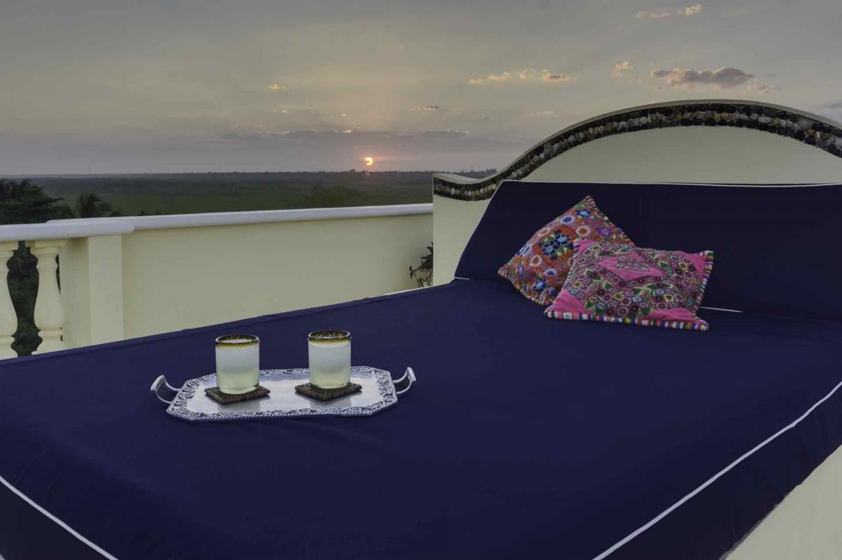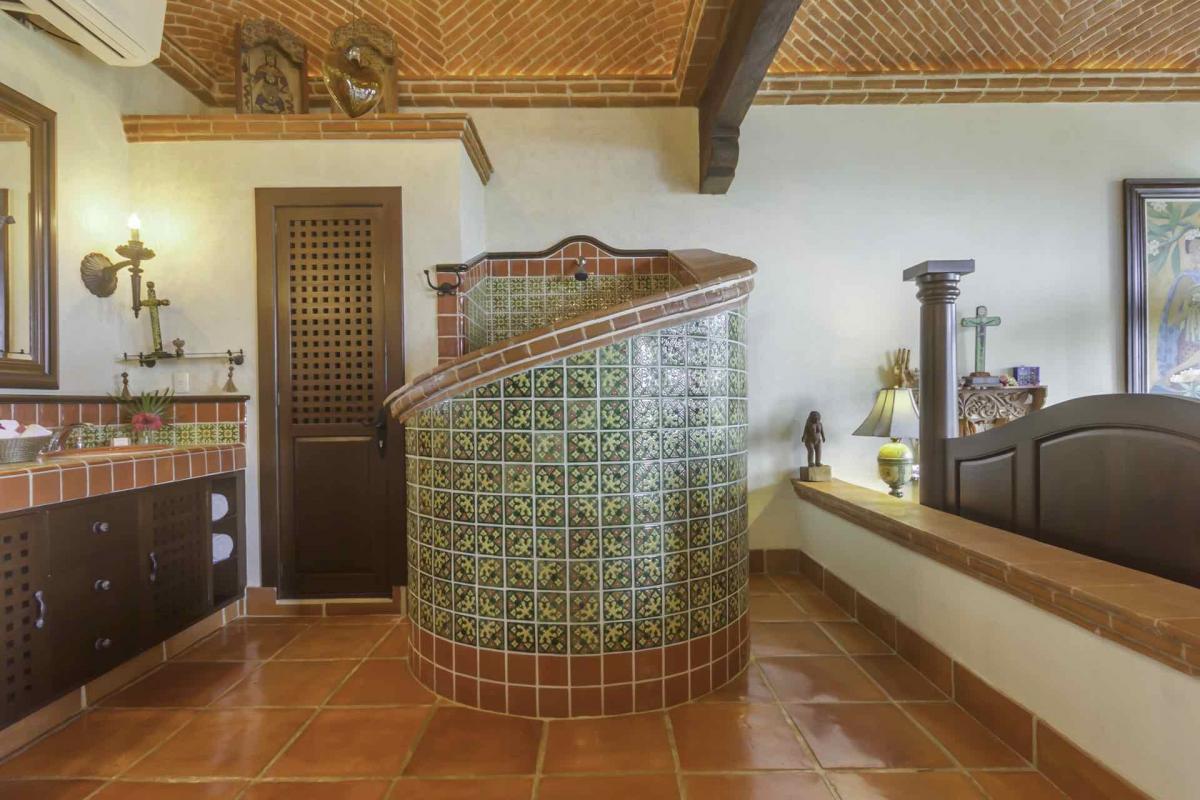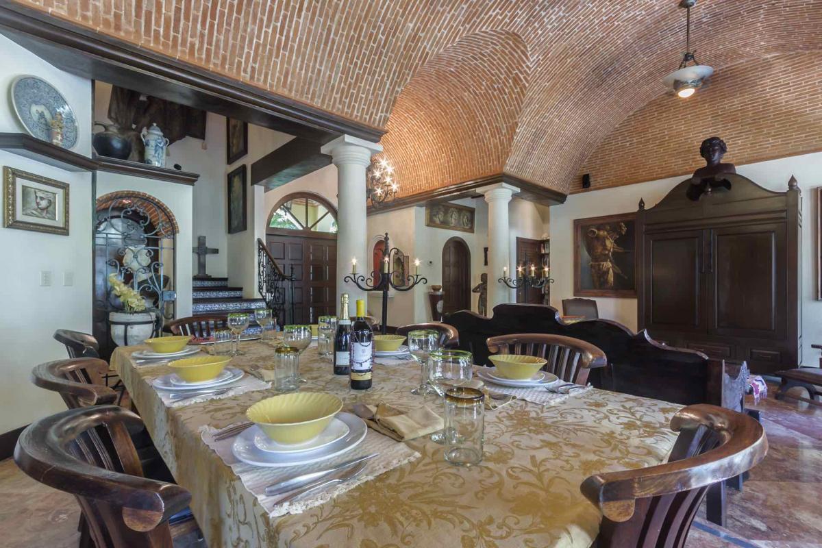 Hacienda Kass is a visually stunning representation of the traditional Mexican Hacienda-style architecture, the only one of its kind on Soliman Bay. An extraordinary, covered entranceway welcomes you to the exquisite villa, a perfect combination for those looking for style, function, privacy and comfort on the beach. The décor of this tastefully decorated & spacious home, from the formal couches, to the luxurious beds and leather chairs were custom made or hand carved in Mexico. Our extensive original art collection graces the walls of the house throughout. The 17 ft foot brick dome ceilings in each room were designed and constructed by fifth generation Mexican masons.