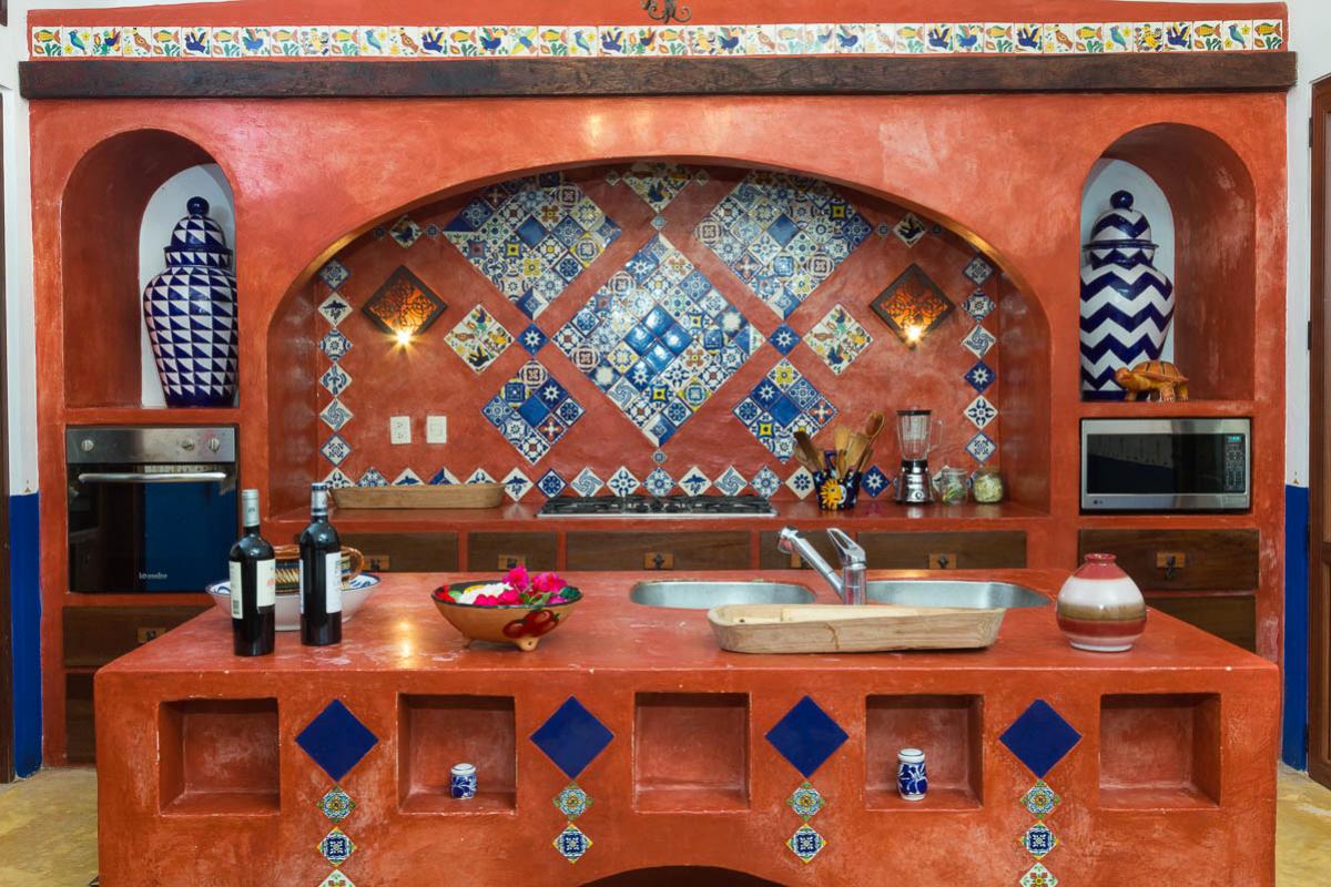 The gourmet kitchen is beautiful with colorful Talavera tiles, carved wooden furniture and hand painted chairs with Charros, the Mexican cowboys. The Chefs and Mexican cooks are on hand should you wish to sample local delicacies or more international fare. The ocean front living room is wonderful, with hand painted ceiling, beautiful decorations, satellite TV and Ipod Dock. This area leads to the indoor dining bar area where you can mix your favorite cocktails or walk out to the terrace with outdoor dining and enjoy the glorious Caribbean!