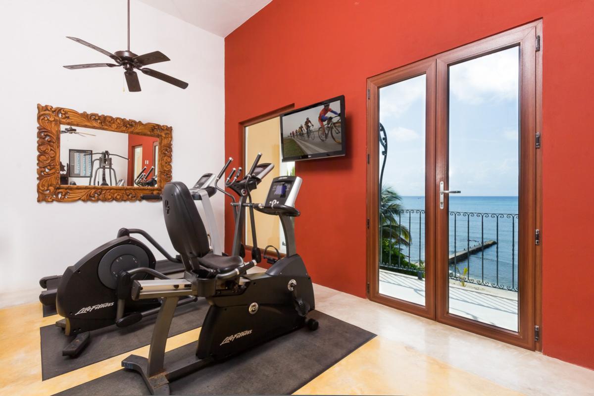 On the upper level of the villa are 4 luxurious suites, one of which is beach side, each suite has a king bed and full bathroom (suite 4 may also be 2 twins). There is also an incredible fully equipped beach front gymnasium.