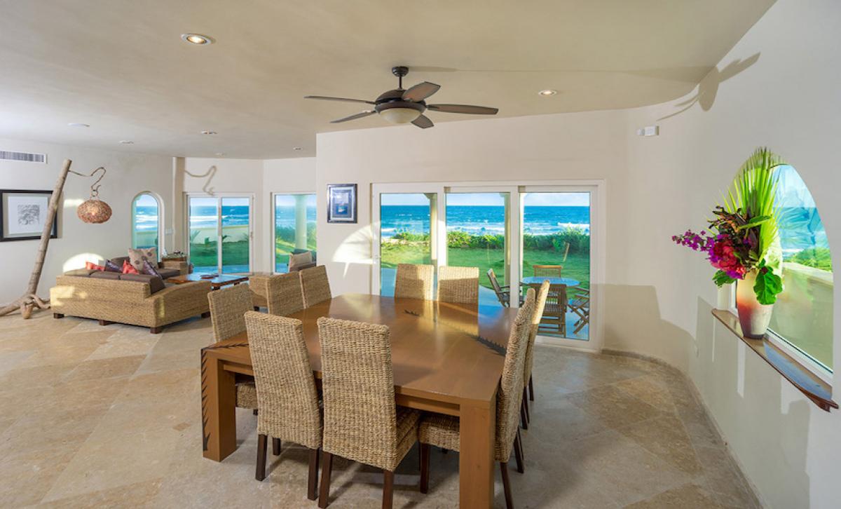 The rooftop patio displays breath-taking panoramic views of the Caribbean. Complimented with a grill, plenty of casual seating, sunbathing beds, lounge bar, massage table and the romantic charm of a million stars in the evening. The simple, yet sophisticated, design is the place to totally relax in the sun or shade with complete privacy. This is one of the premiere places in the world for viewing turtles where they nest and hatch. Many guests consider the roof “the best room” in the house.