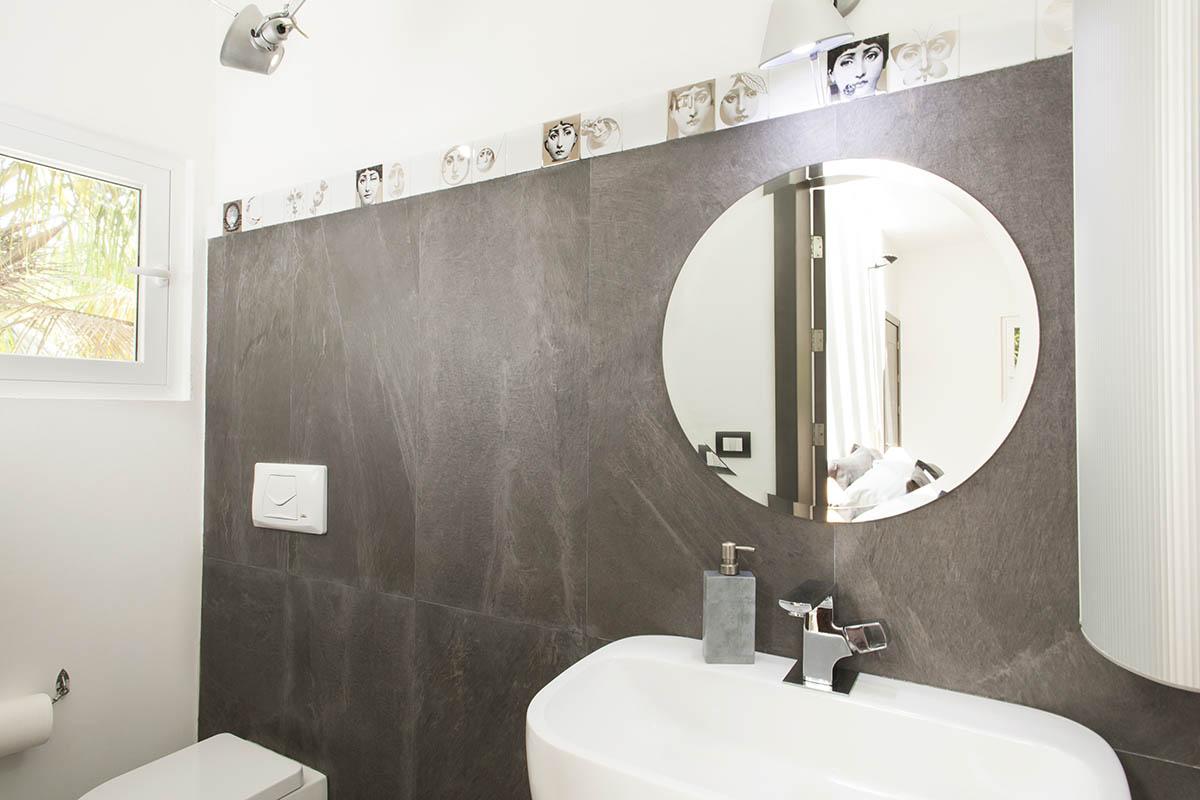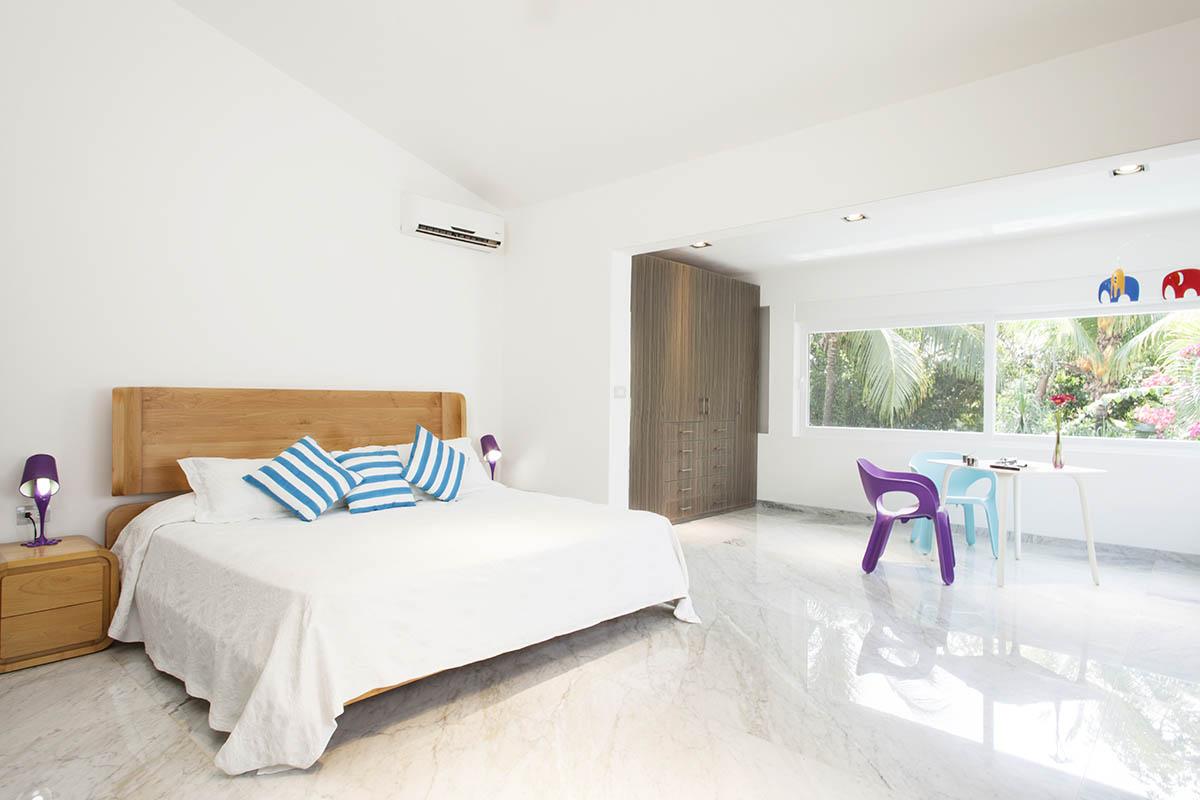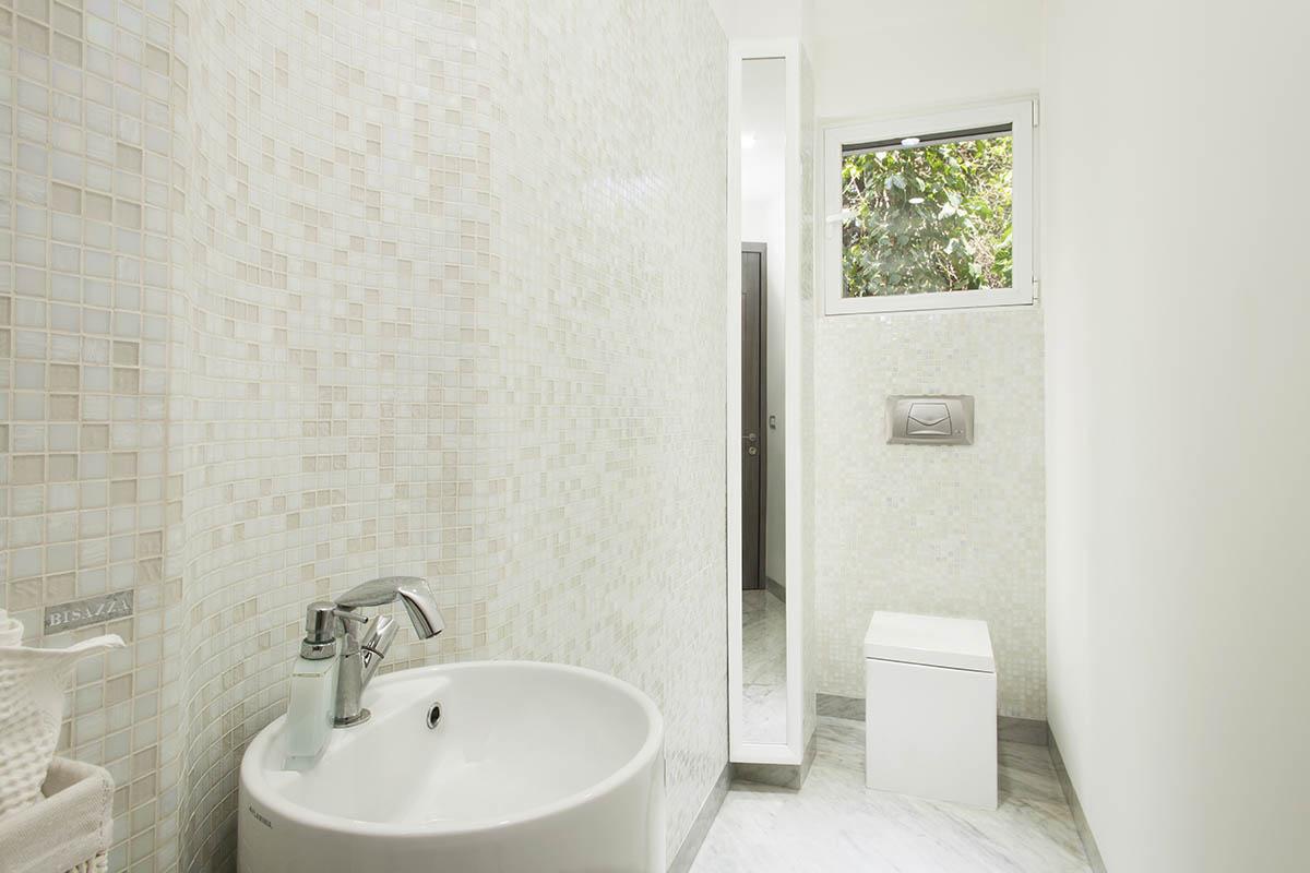 The villa offers six bedrooms, each with air conditioning and ceiling fans, each furnished with a King size bed and ensuite Italian-style bathroom. The master room has a Jacuzzi tub for two with whirlpool and airpool while the second master room has a simple bathtub as well as a shower. Three bedrooms are equipped with Smart TV with s Sky Plus, and access to internet (Netflix, Youtube etc).