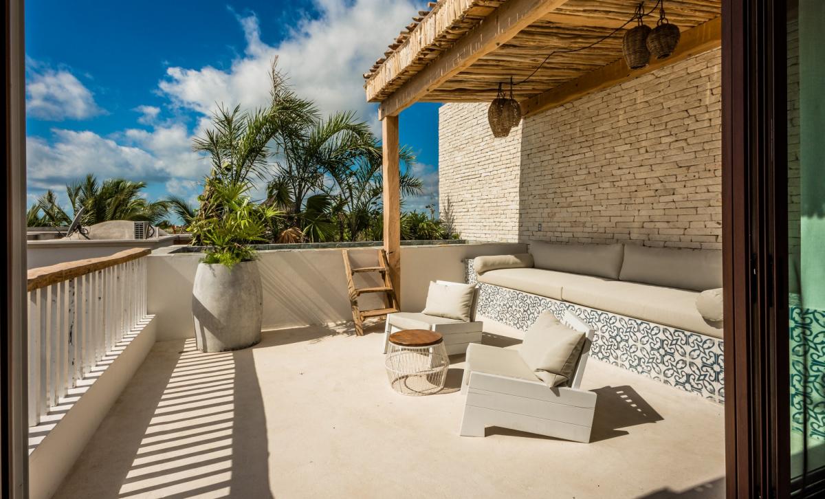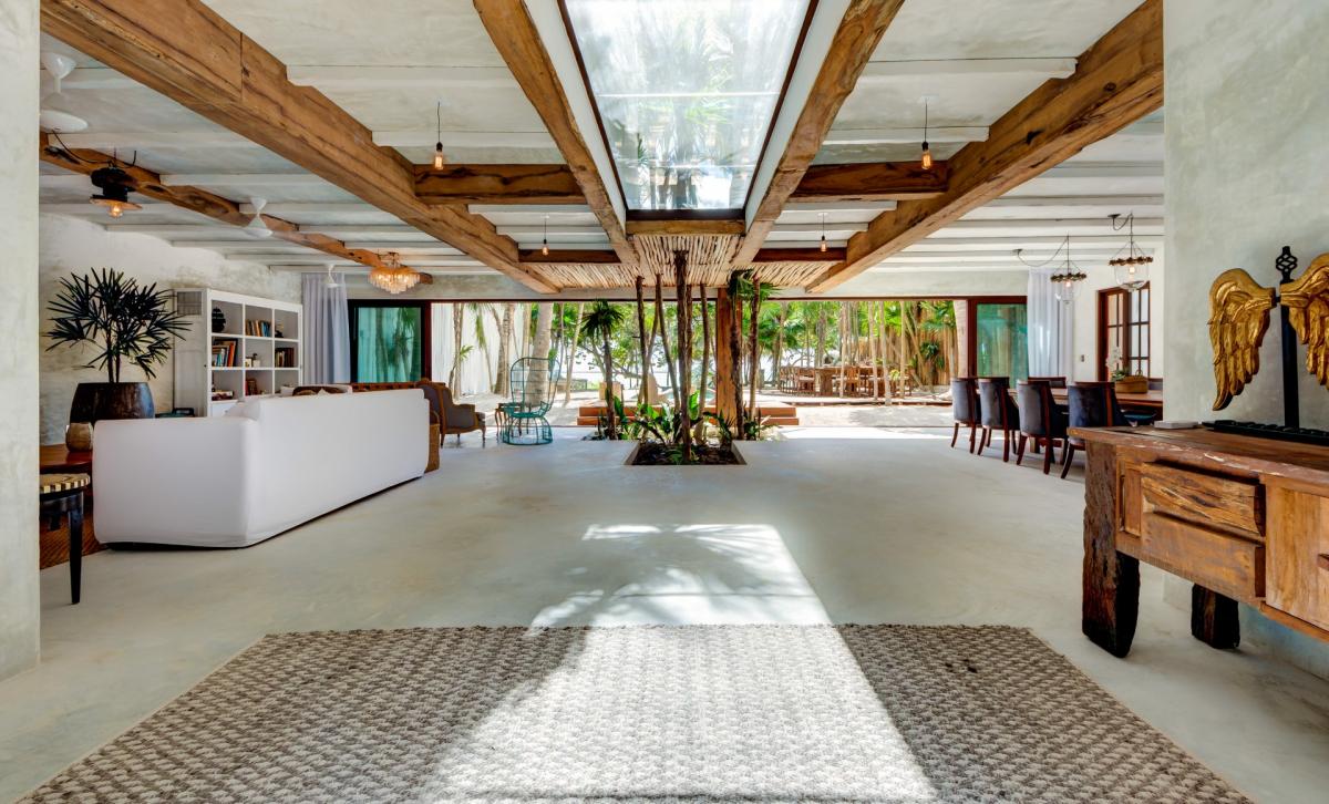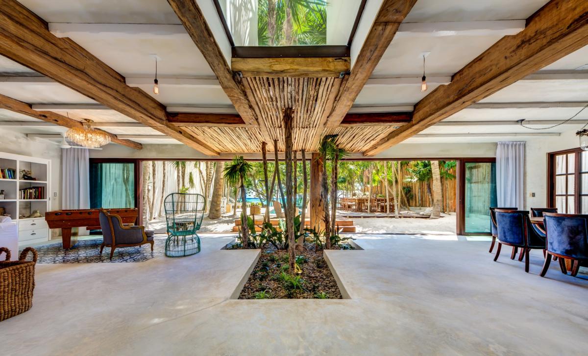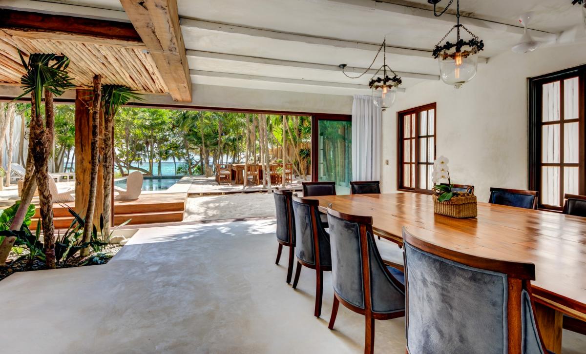Situated between the lush, green mangrove jungle and a secluded beach of Soliman Bay, Villa La Semilla has been created to live harmoniously with nature and guests can savor a unique experience with the support and service that is synonymous with the La Semilla brand. The property boasts a private stretch of beachfront with spectacular views of the bay that you can enjoy from any one of the terraces adjacent to each bedroom. There are also two tiered rooftop terraces, one of which has a pool, for sunbathing by day and stargazing in the evening. The first floor living area has been created in an open-concept style with spacious kitchen, dining and living space that reveals a private garden veranda with infinity pool. This modern, rustic home has been created to evoke privacy, luxury and nature and is the perfect place to immerse oneself in the natural beauty of Mexico. The kitchen, dining table and living area are an open concept, where families can enjoy quality time, surrounded by floor to ceiling windows that offer views of the brilliant jungle which envelopes the Villa.