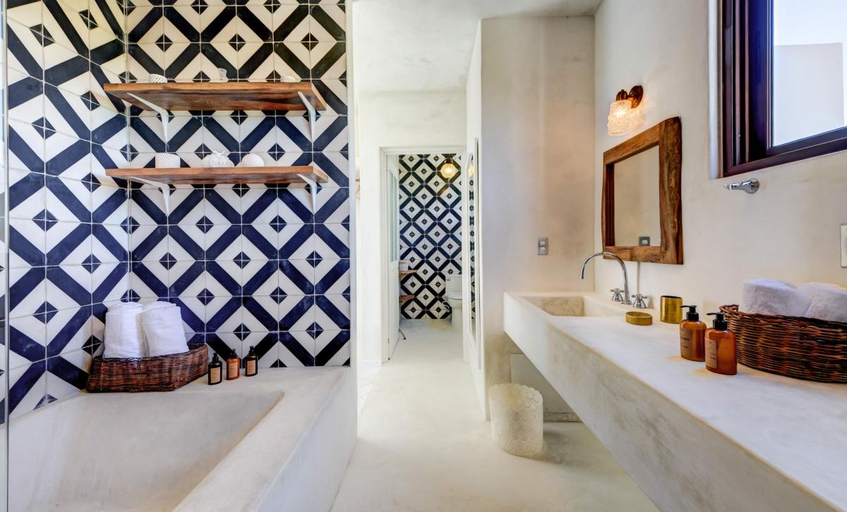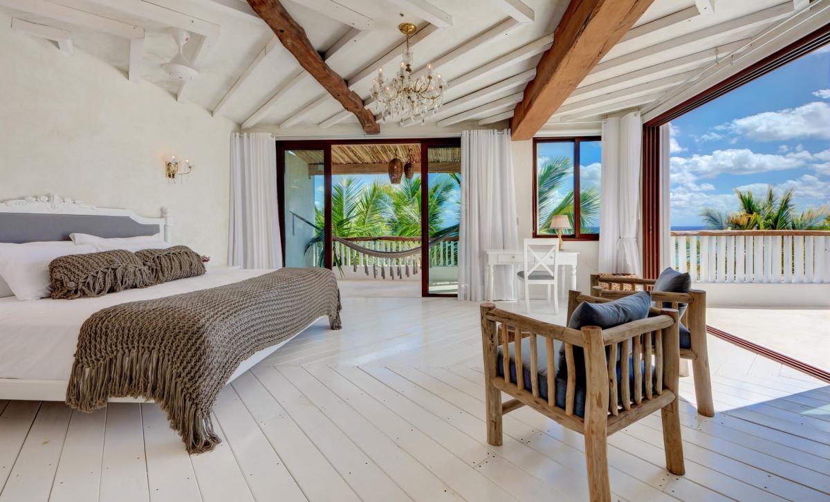 - Bedroom 4: Two double beds, en suite bathroom with shower and bathtub, AC, ceiling fan, closet, hammock, ocean view, private balcony