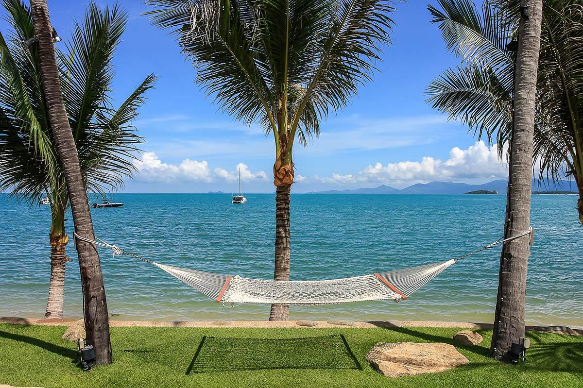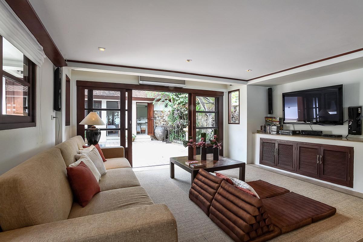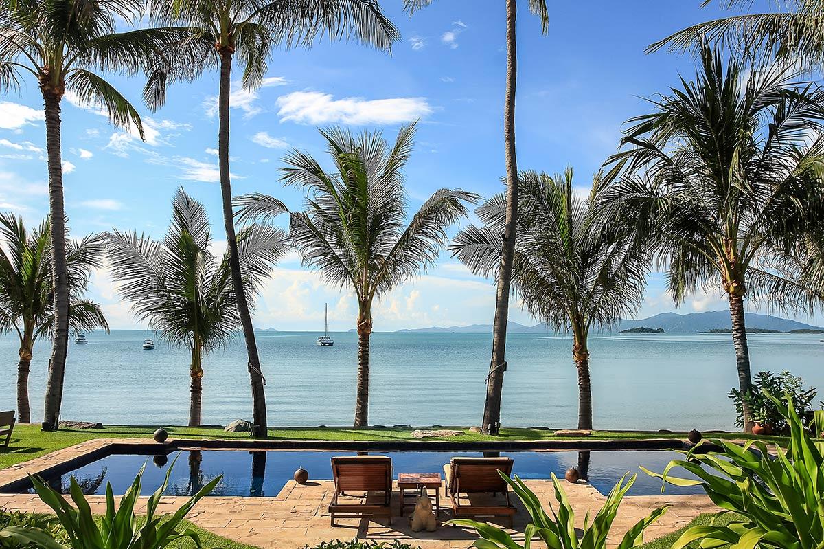 Ban Haad Sai is a large luxurious beach front villa comprised of 2 identical pavilions with spectacular sea views overlooking the truly inspiring golden Big Buddha Bay and its famous Temple, the Big Buddha. Ban Haad Sai offers the style and class of many of the region's top 'boutique' hotels. A truly exclusive and private holiday destination, offering relaxation and comfort in unique surroundings. The property opens on to the 3km white sand beach from the pool and lawn in a bay that is perfect for year round swimming, jogging and the stunning sunsets. The two pavilions, each with 330 sqm of living space and deck and courtyard area, are situated side-by-side overlooking the beautiful beach with Koh Phanghan in the distance. Each pavilion features 3 air-conditioned bedrooms (2 double and 1 twin), all with en-suite bathrooms. The master bedrooms overlook the beach and have sumptuous bathrooms including a secluded outdoor Balinese bath and shower. In addition to the 2 identical pavilions there is a third building, as you enter the property, that houses the air conditioned gym and the seventh bedroom. In addition there is a bathroom with a full size bath and shower that serves both the gym and the 7th bedroom. Each pavilion has its own private access, a fully fitted kitchen, indoor and outdoor dining areas and a large living room equipped with all amenities. All rooms are furnished and equipped to a very high standard. Sliding doors from the living areas and main bedrooms open onto large teakwood decks, ideal for dining or just relaxing. Surrounded with lush vegetation and mature coconut and tropical trees the setting preserves everyone's privacy. The pavilions share a 1,600 sq.m. walled gardens complete with Thai artifacts and a large double hammock in what can only be described as picture postcard setting. The 12 meter pool is floodlit and complete with a sunbathing area. All sitting out areas are equipped with deck furniture, loungers and umbrellas. And all this right by the beach with Koh Phan Ngan and Big Buddha on the skyline. Three resident full time staff that can organize a candle-lit beach dinner; a garden BBQ or a stylish indoor dinner party prepared by our qualified Thai Chef service at the villa. Or you can walk along the beach and choose from the nearby eclectic range of restaurants - either local or International.