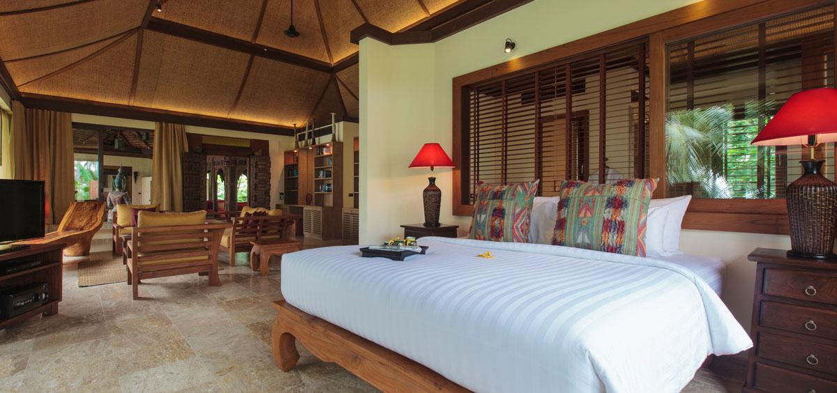 King size bed, En-suite bathroom, Air conditioning, Safe, Smart TV, iPod dock, Mini bar, Library, Outdoor lounge, Thai massage sala, Bathrobes and slippers, Iron/ironing board, Hair dryer, Terrace, Sea view, private indoor lounge; walk-in wardrobe; owner's library