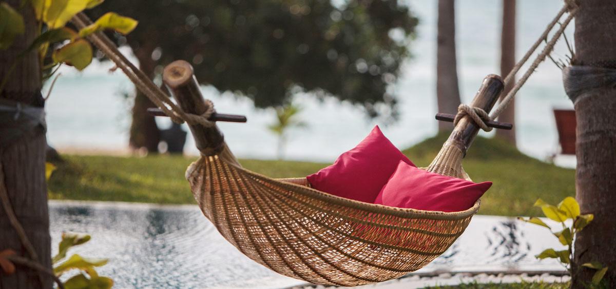 The villa's central focal point is the impressive 300 meter chemical free pool that resides centre stage amidst the tropical palms. The expansive wooden and marble pool decks offer loungers and sun beds, ideal for sun worshipers. Hammock Island, the central pool feature, is perfectly positioned for those wishing to relax.