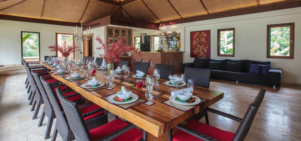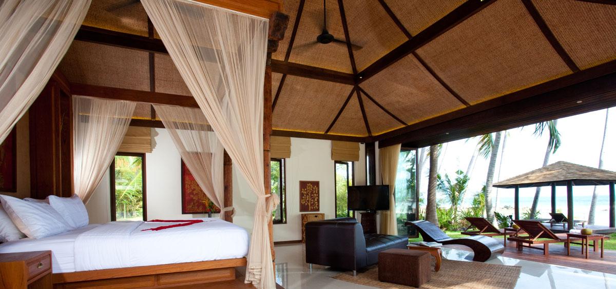 Each of the nine beachfront and sea view bedrooms at Villa Kalyana are drenched in unfolding views with the utmost attention to detail. The suites are highly appointed, with Smart Internet LED TV’s and Ipad / Ipod Docking Stations. Individual interior designs feature exquisite far eastern antiques, enhancing the Orient feel of the estate.