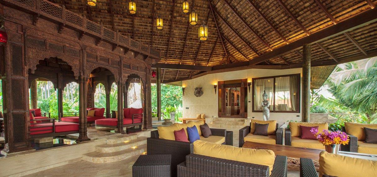 Undeniably beautiful, Villa Kalyana is an exclusive beachfront estate, within a private bay, on Koh Samui’s idyllic south shore. The lush palm tree plantation, fringed by the icing sugar sands and clear turquoise waters of the Gulf of Siam, set the surroundings for this unforgettable villa. This tropical villa haven features 14 bedrooms and can accomodate up to 26 adults plus several kids comfortably. Villa Kalyana is designed around the natural architecture of this private beachfront location. Structures blend seamlessly, housing the tropical foliage and further enhancing the natural beauty of this stunning beachfront location.