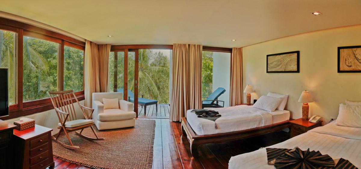 2 Twin beds, En-suite bathroom with shower, Air conditioning, Safe, TV, DVD player