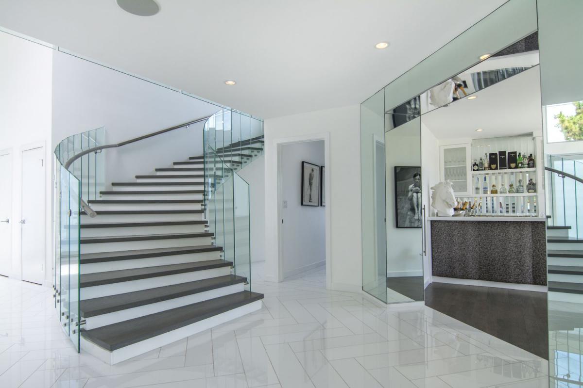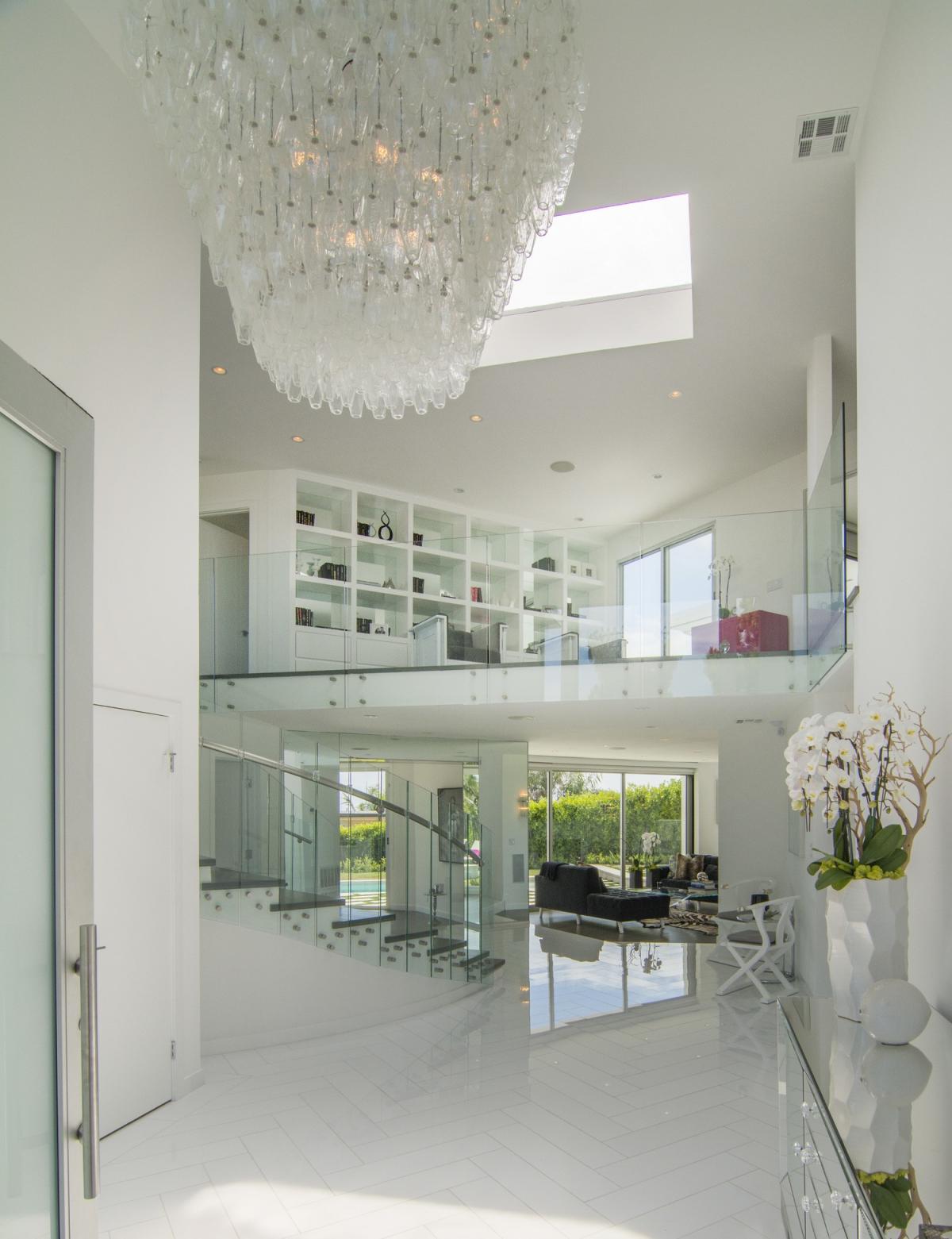 Enter Venus Modern through the grand entry boasting Venini chandelier and curved glass staircase. The indoors flow seamlessly to the outdoors with the living room, pool/spa, grassy yard, custom kitchen complete with Miele appliances and all the light you could need.
