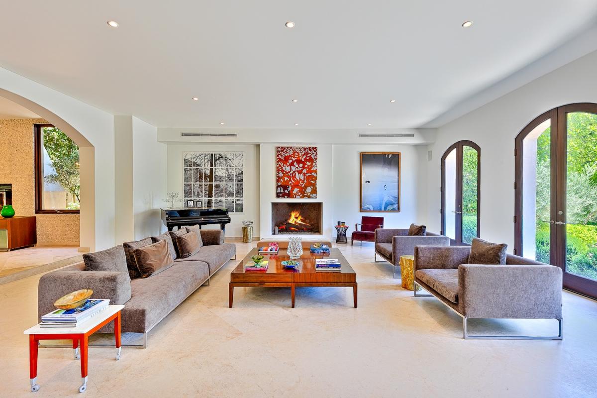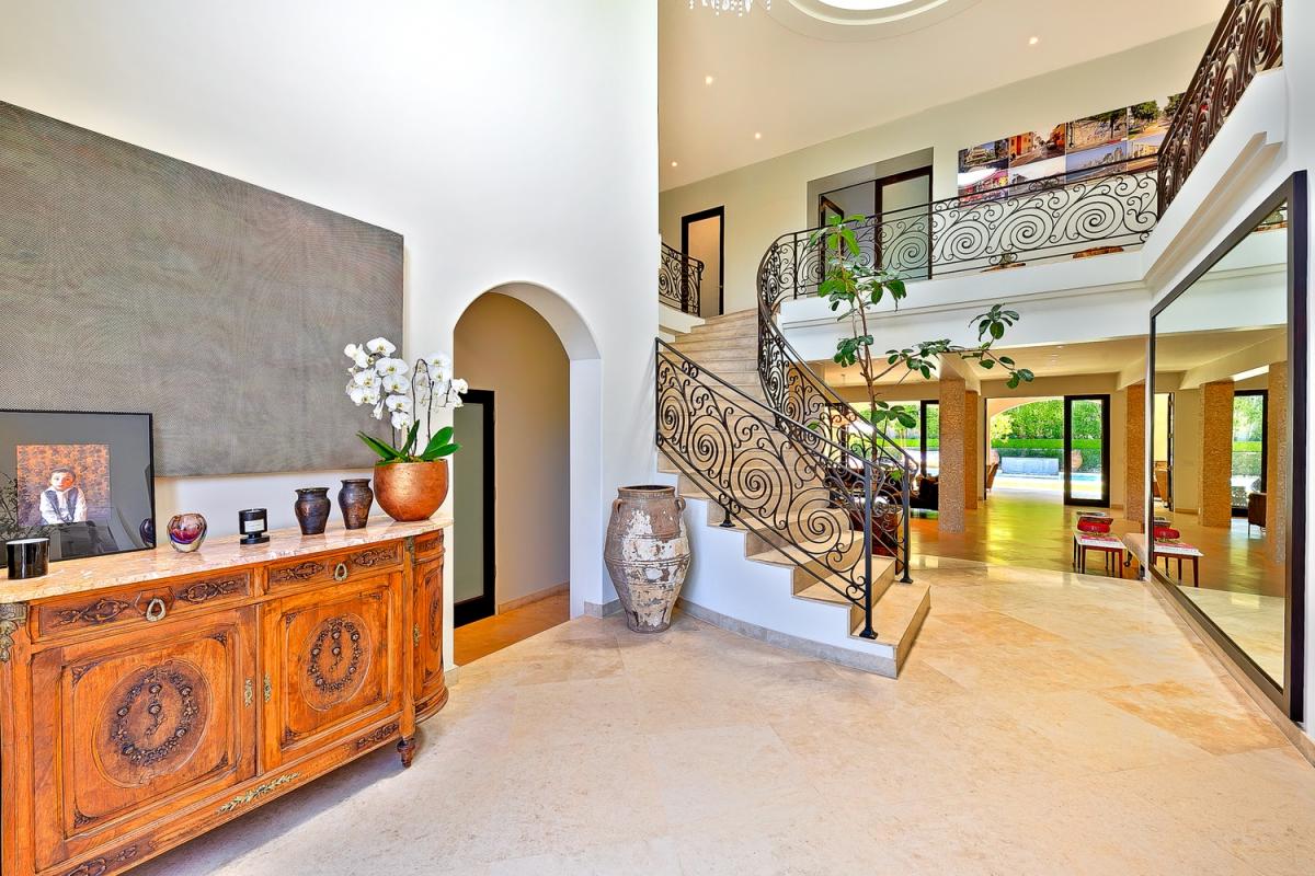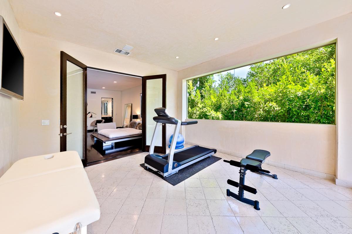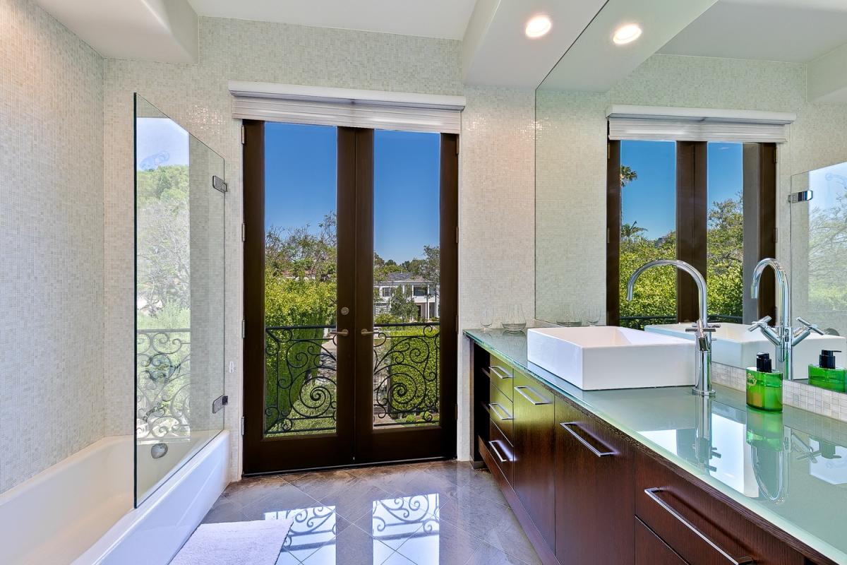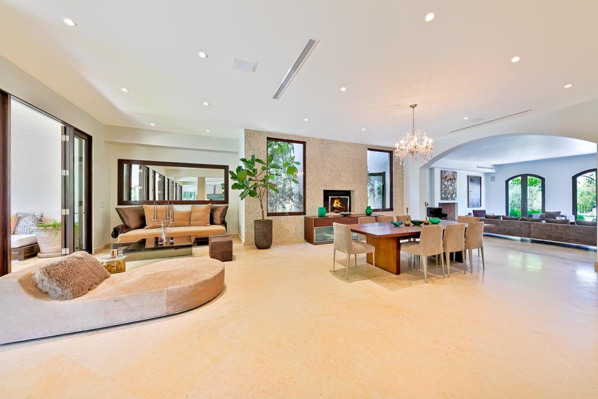 Villa Alta Paradise's grand foyer incoporates 25 foot ceilings with travertine tile floors and wrought-iron staircase to take your breath away. The kitchen offers Careera marble counters, Viking stove and sub-zero along with a built in Espresso station. You can blend the outdoors with indoors effortlessly with the large 10 foot glass doors that open to a relaxing pool/spa, outdoor (covered) fireplace, and patio lounge.