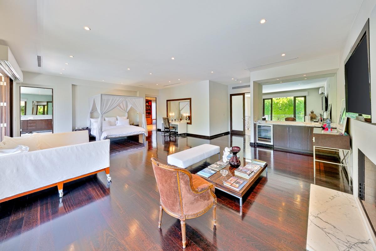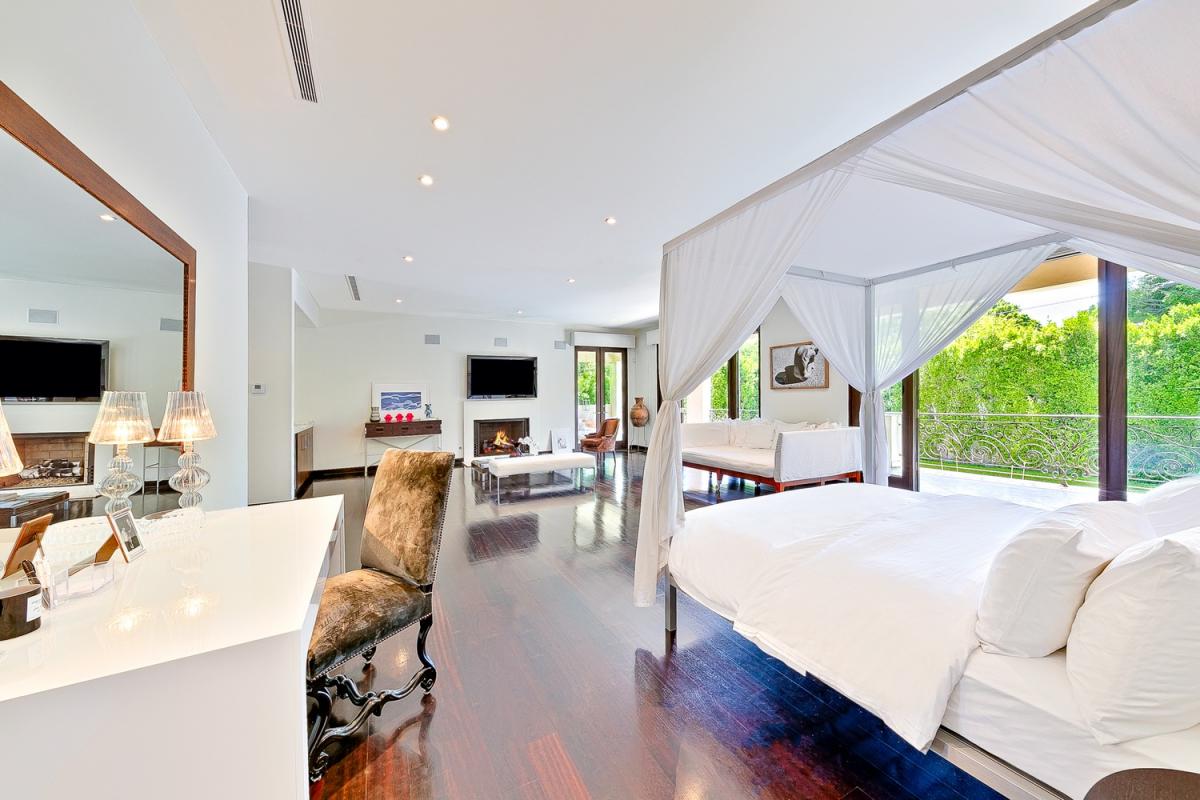 Primary: King size bed, Day bed, Ensuite bathroom, Rain/Steam shower, Dual Vanity, Jetted Tub, Bidet, Walk-in Closet, Television, Apple TV, Fireplace, Desk, Balcony