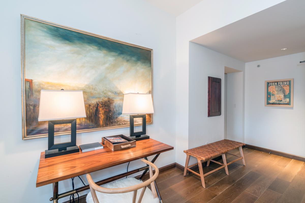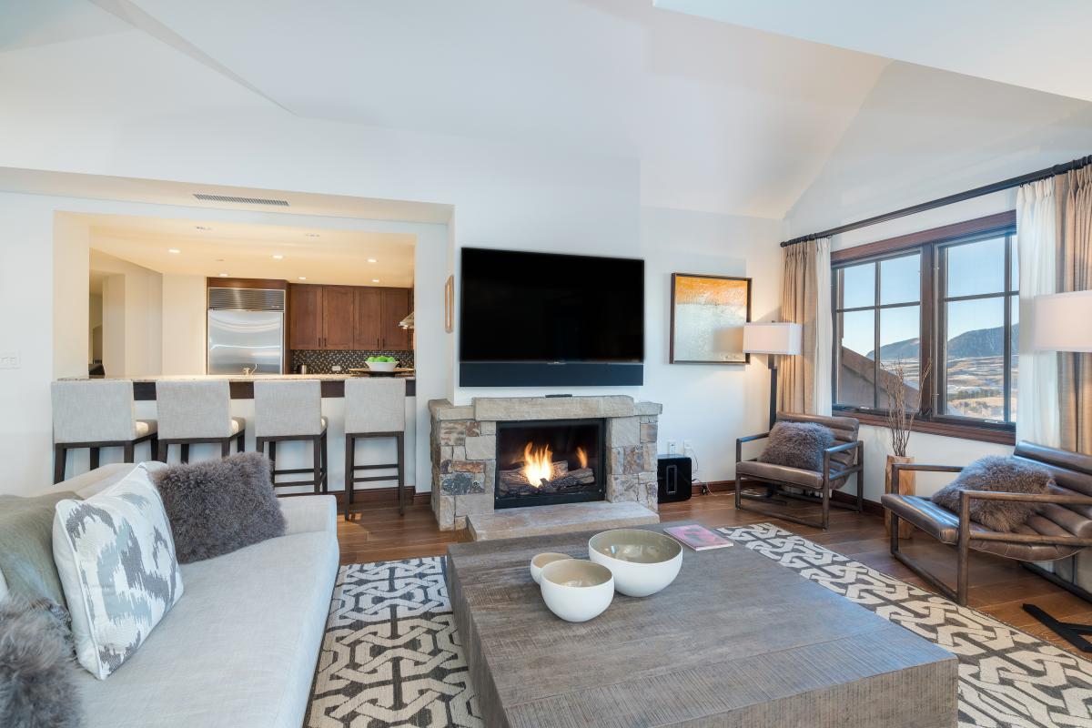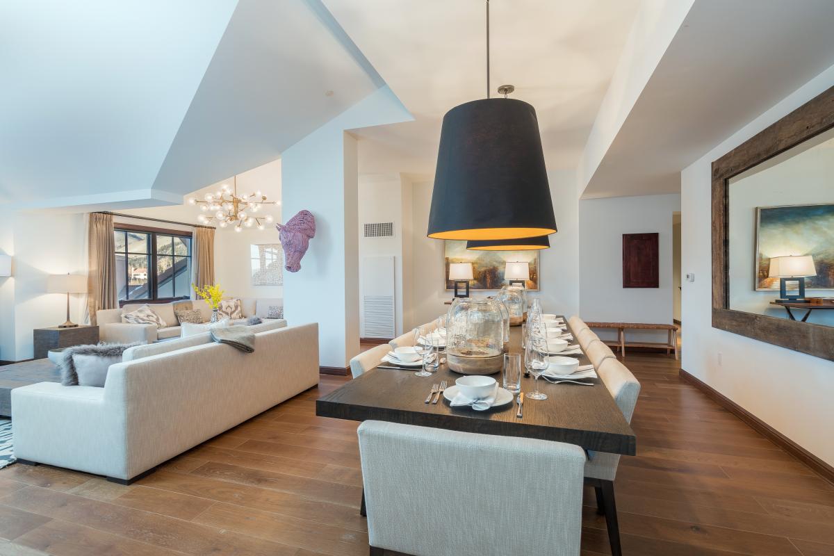 Madeline Penthouse has the honor of featuring vaulted ceilings, beautiful hardwoods and romatic mood. The Penthouse is home to a gas fireplace surrounded by comfortable seating and gigantic windows inviting the stunning views inside. The Great Room also features a large flat screen television, Sonos sound system, and writing desk.