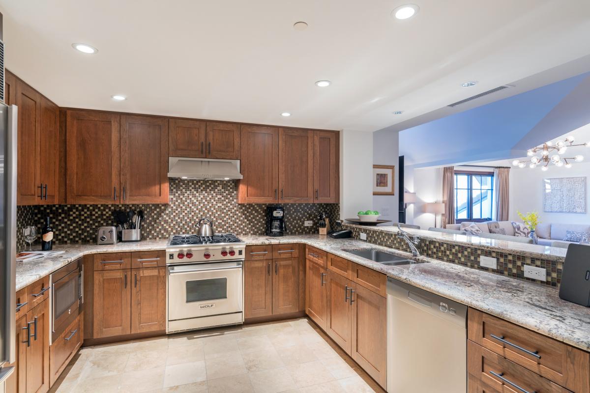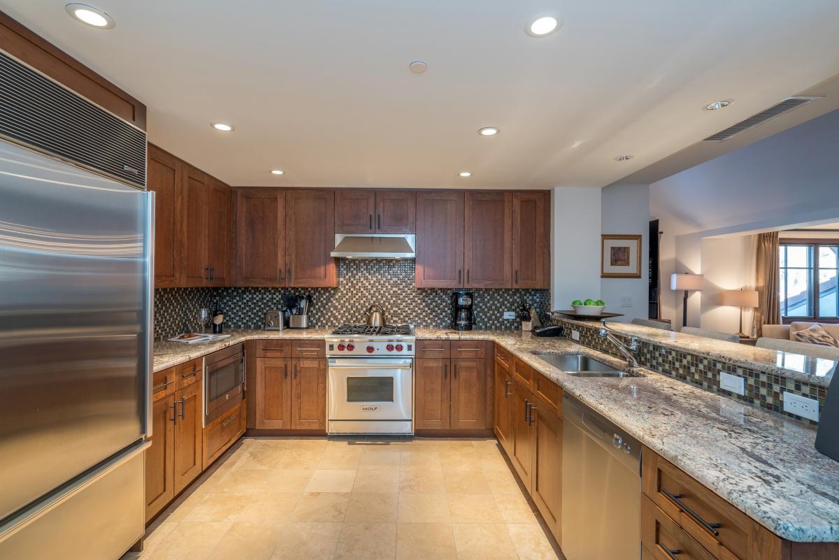 Located just next to the Great Room, guests will enjoy playing and eating in the gourmet kitchen. Madeline Penthouse features high-end stainless steel appliances, Cuisinart drip coffee maker, custom cabinetry, and granite counters for all your prep needs. Guests can opt to dine at the breakfast bar or formal dining area (seating four).