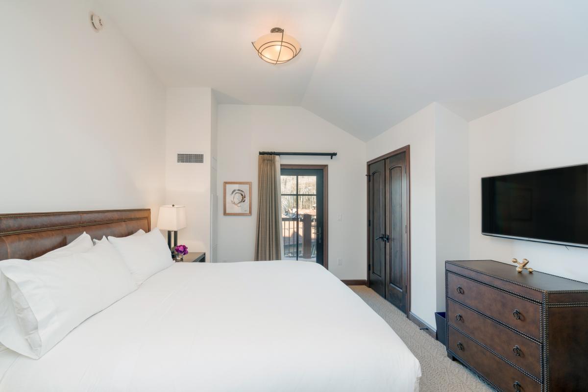 The master suite is steeped in luxury featuring vaulted ceilings, an ultra-comfortable king size bed, flat screen television and large walk-in closet. This room hosts an en suite bathroom with a steam shower and deep soaker tub with dual vanity.