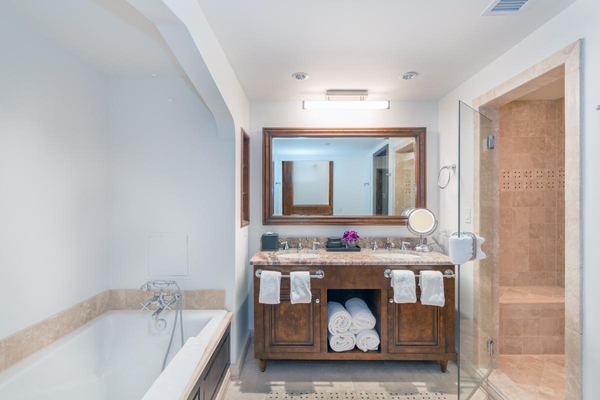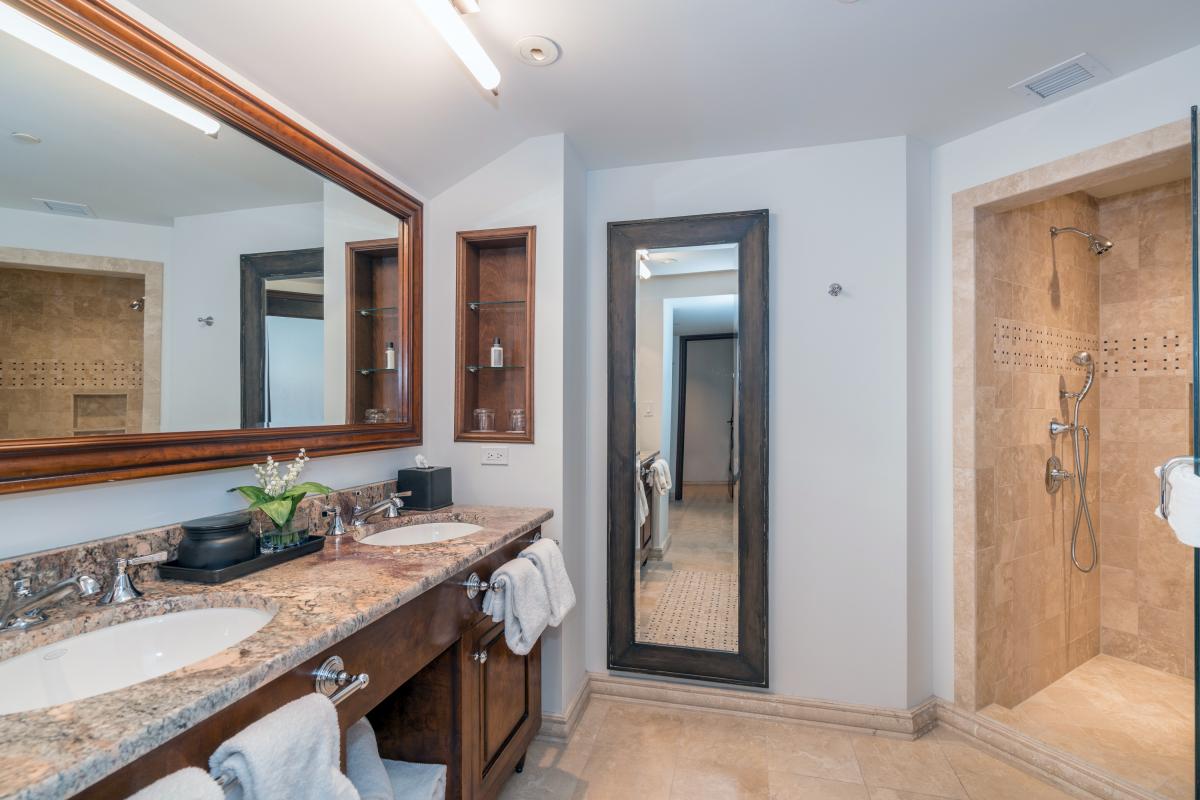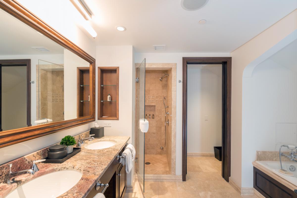 The additional bedrooms all include flat screen televisions, and views of the San Sophia Range. Guest 1 shares a balcony with the master suite while Guest 2 and the Bunk Room share a balcony of their own. Each of the three guest rooms feature soaker en suite bathrooms.