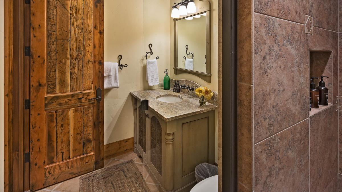 A lower level media room incorporates a rustic bar with private outdoor hot tub, and indoor sauna. Gold Mine Lodge is home to a fully equipped exercise room so you won't miss a workout. The lower level also houses a ski room providing easy access and storage solutions for all your equipment.