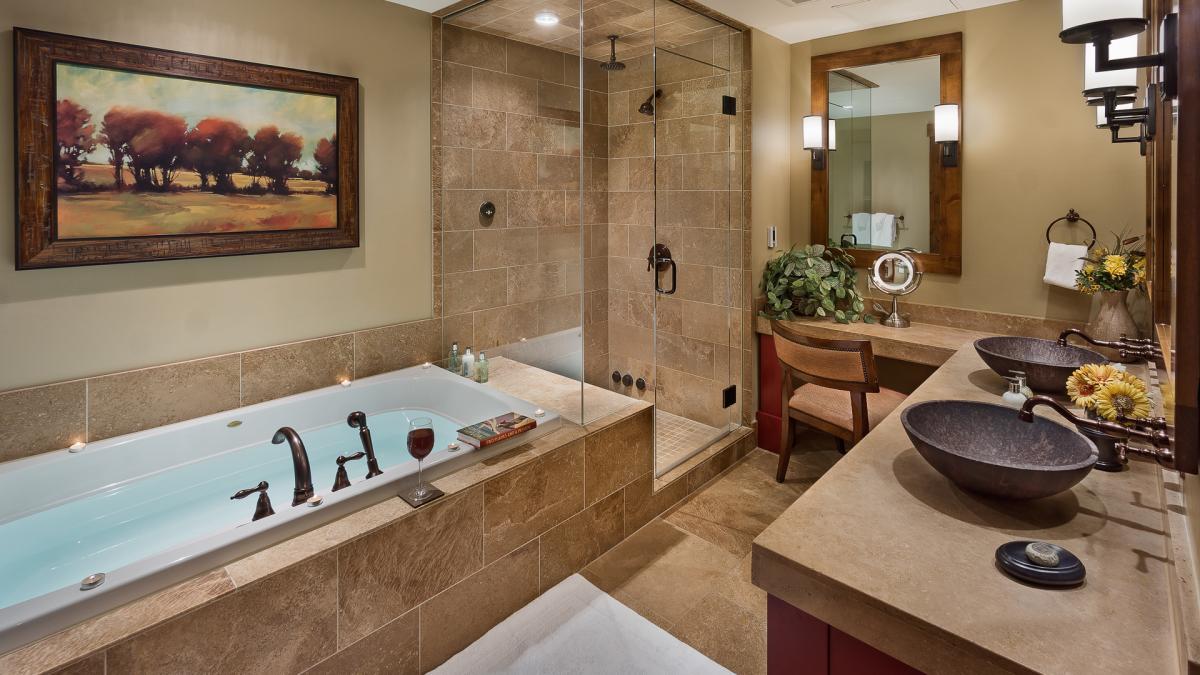 The master bedroom is a true retreat sitting alone on one side of the residence. Along with a gas fireplace and King bed in the bedroom, the main master bath features a steam shower and Jacuzzi tub. On the other end of the residence you will find the Guest Master with a King Bed sitting alongside a third bedroom with a Queen, and a fourth with a Queen and Full bunks. All bedrooms have private bathrooms.