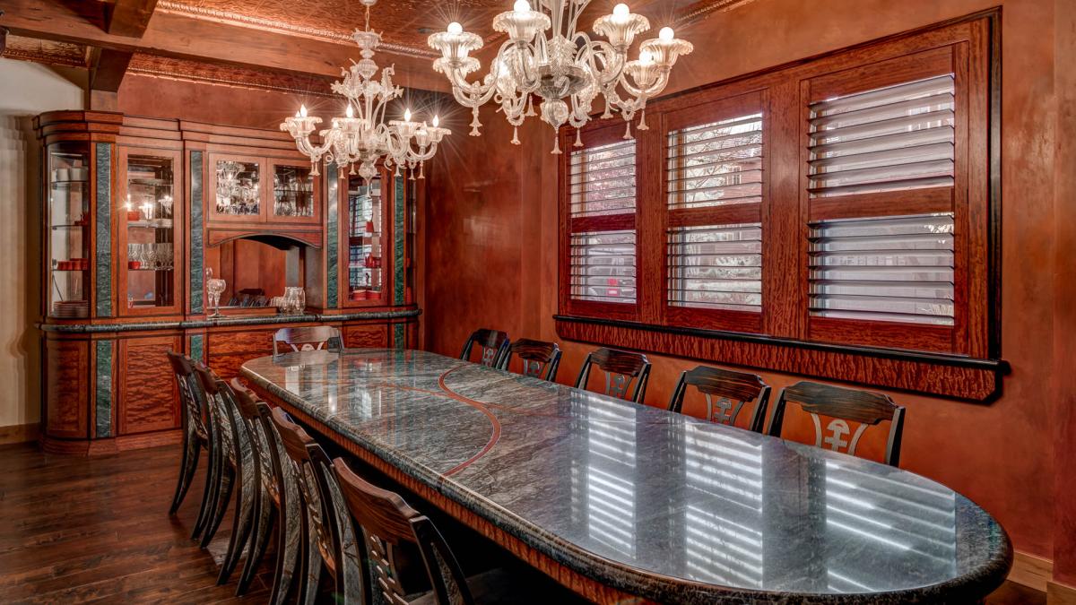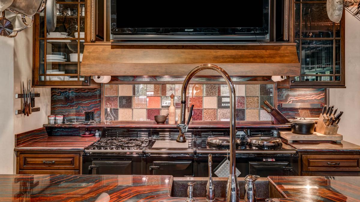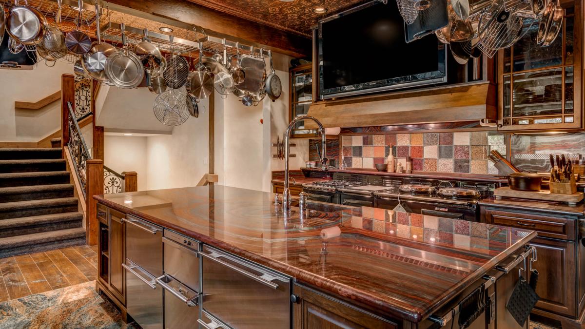 Chefs from every walk of life will revel in Rocking Chair Lodge's gourmet kitchen equipped with SubZero double refrigerators, freezer drawers, ice makers, wine and beverage refirgerators, AGA gas stove (6 ovens, 4 burners, 2 hot plates and warming plate). double Asko dishwashers, Miele coffee maker, Vent-a-Hood hood, convection oven/microwave, copper farm sinks and double islands featuring banded iron stone. Guests can gather at the 12 seat granite dining table with space for an additional 4 at the bar.