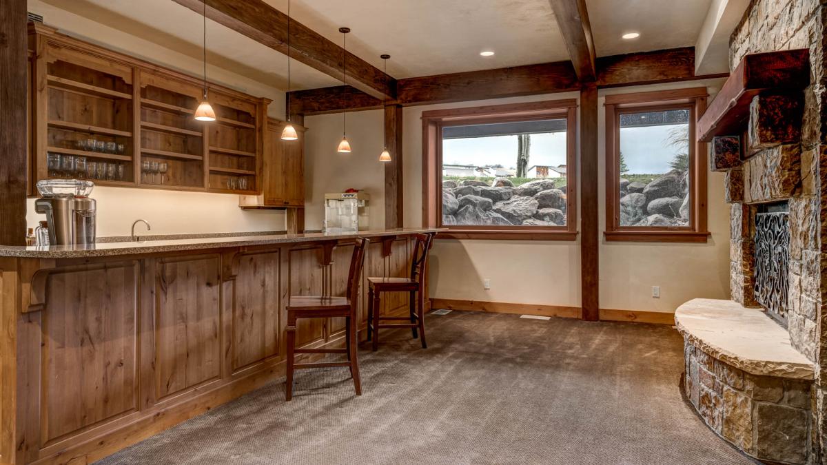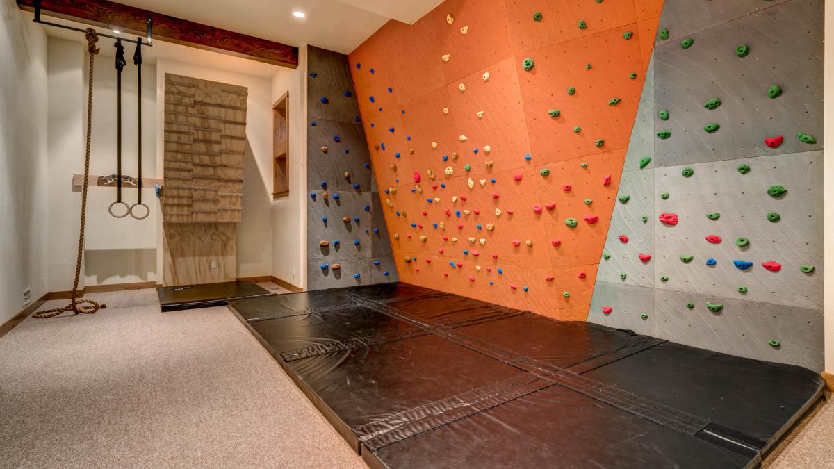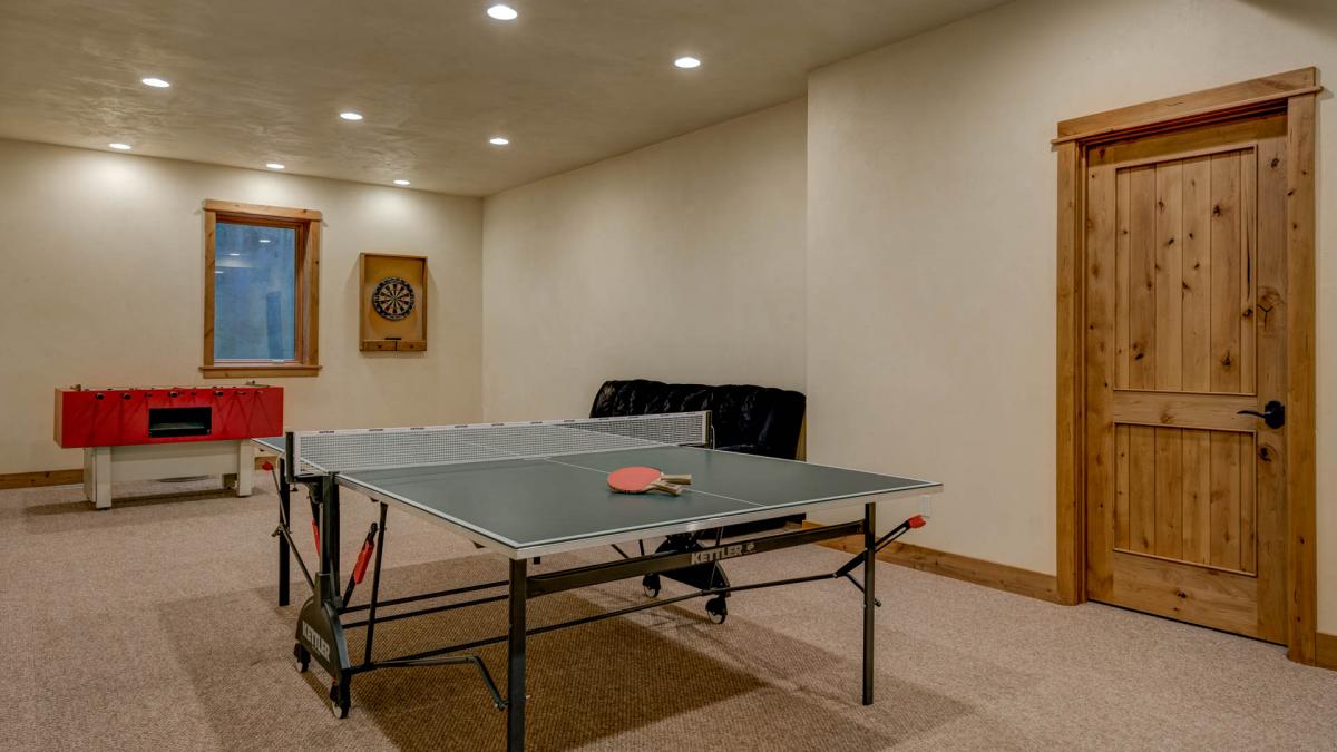 The lower level of Rocking Chair Lodge is specifically built for entertaining. A media room hosts a movie screen and is outfited with reclinign theater seats. A full wet bar with beverage refrigerator/freezer, pool table, and fireplace are all present. Next door, you'll find ping-pong and foosball with a 14 foot climbing wall in the play room.