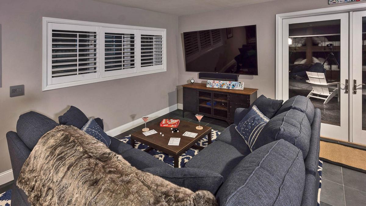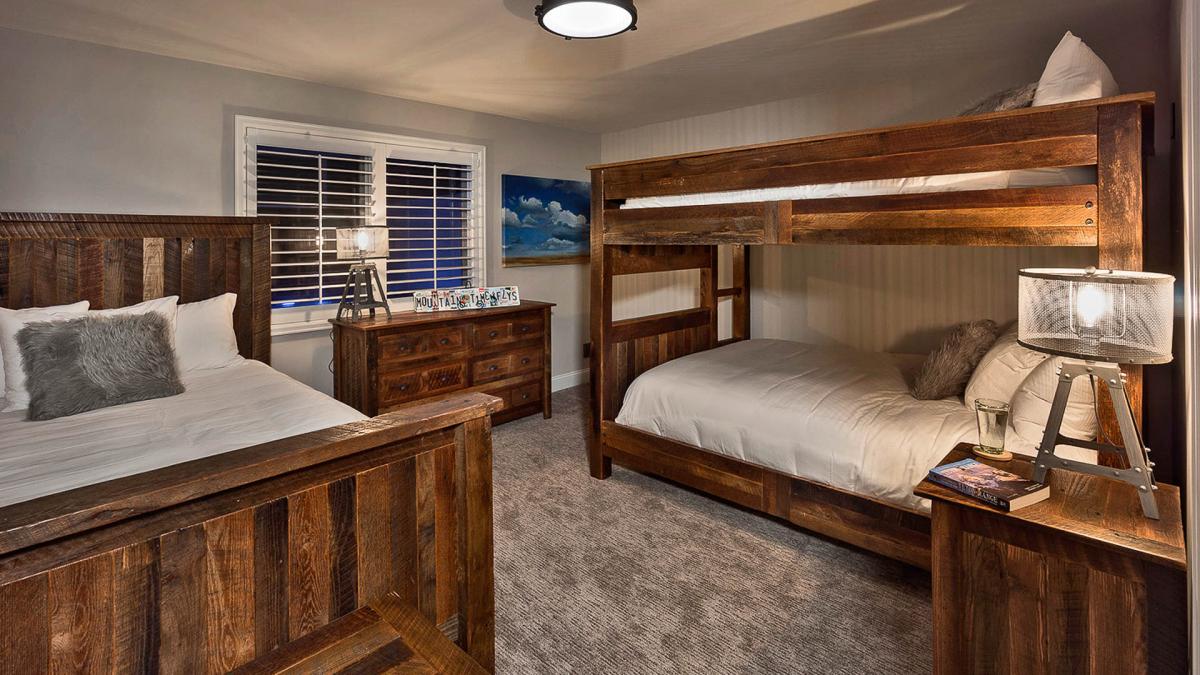 The lower level bunk/rec room is the perfect place for teens or young adults. 4 built in queen beds surround a monster 75" flat screen TV for the ultimate movie or sports experience. The rec room opens to the private hot tub deck where you can relax and experience the peace of the mountain view after your day of adventure on the slopes.