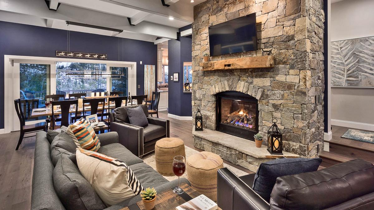 Time Flys Lodge offers everything you need and a few perks that make your ski vacation top notch. Enjoy the wrap around mountain views and take in the voluminous natural beauty. The great room is the perfect place to relax in front of the fireplace where you can take in a movie on the big screen or just enjoy the serene views. The dining area will accomodate up to 10 guests and is the perfect place to entertain - it can be the central focus with easy access to the spectacularly designed kitchen. The gourmet kitchen surrounds a huge central island with lots of counter space for even the most advanced chefs. The island can seat an additional six guests combined with table seating for another 5. Outdoor space is a focus with a deck off the great room overlooking the mountains and valley below.