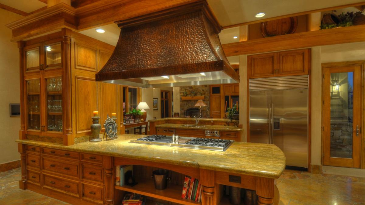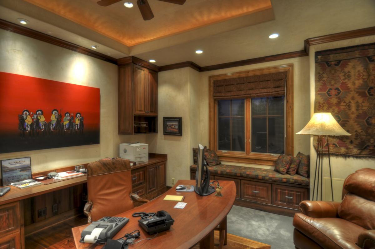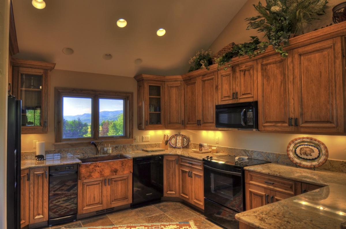 Guests will immediately be greated by a two story rock fireplace which passes through to the Great Room featuring 25 foot ceilings, a large TV, and plenty of comfy seating to allow enjoyment of the massive windows and views. The kitchen is just off hte great room and will thrill chefs of every level. Granite counters, 6-burner gas stove, and copper hood area ll waiting to inspire a creative dinner to spring from the double oven and oversized refrigerator. The dinning room seats 12 comfortably and features windows with views, much like most rooms of the house.